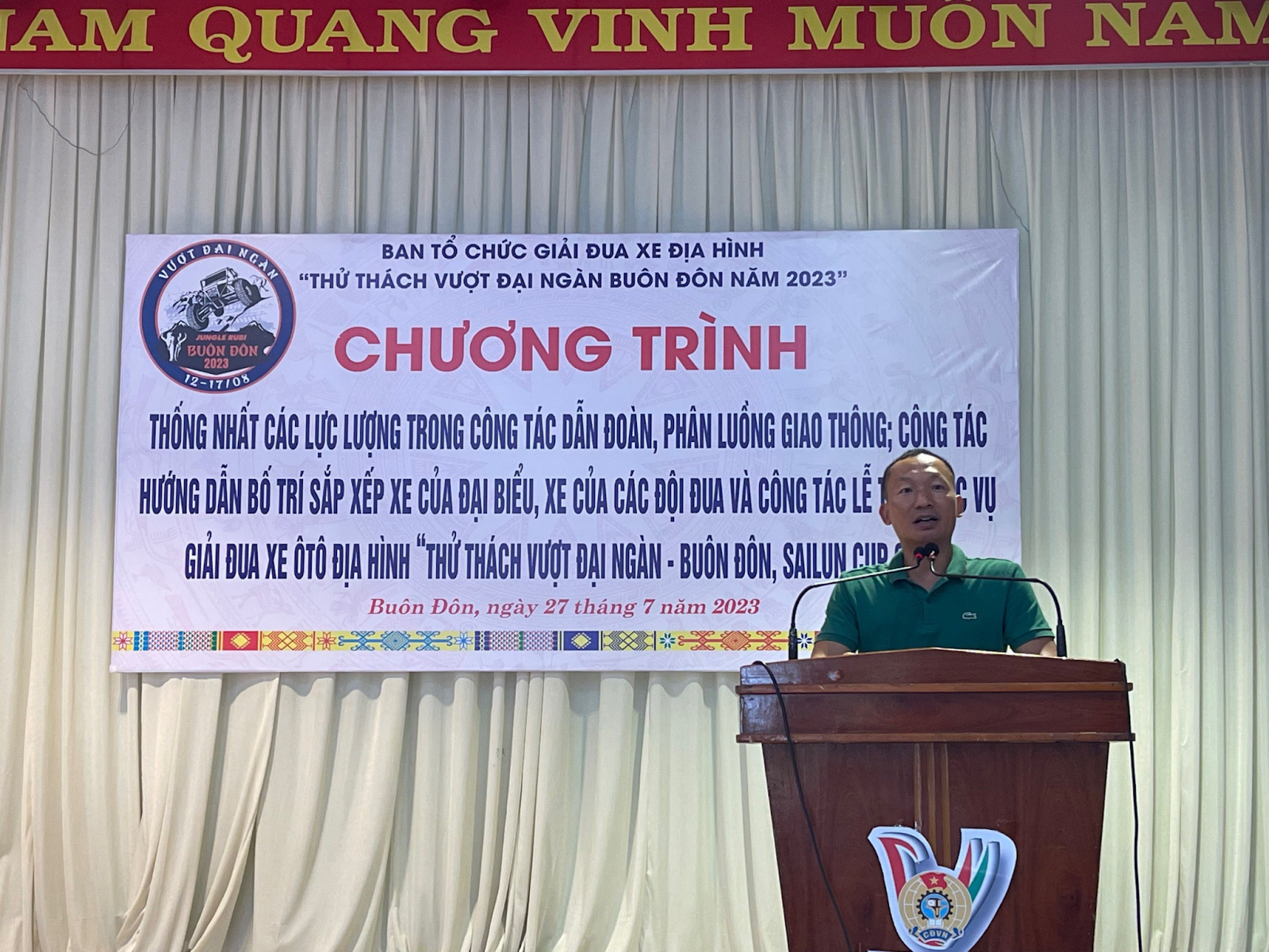 Giải đua xe địa hình “Vượt Đại Ngàn – Buôn Đôn Sailun Cup 2023” diễn ra từ ngày 12/8/2023 đến ngày 17/8/2023 tại khu vực Hồ Thác Vàng, xã Krông na, huyện Buôn Đôn, tỉnh Đăk Lăk. Giải đua được tổ chức bởi Sở văn hóa Thể thao và Du lịch tỉnh Đăk Lăk, UBND huyện Buôn Đôn, công ty Cổ Phần Đầu tư và Phát Triển Rubi Đại Ngàn, công ty Cổ Phần Tập đoàn Kỷ Nguyên phối hợp cùng Công ty TNHH MTV Sản xuất và Thương Mại Minh Giang,...
