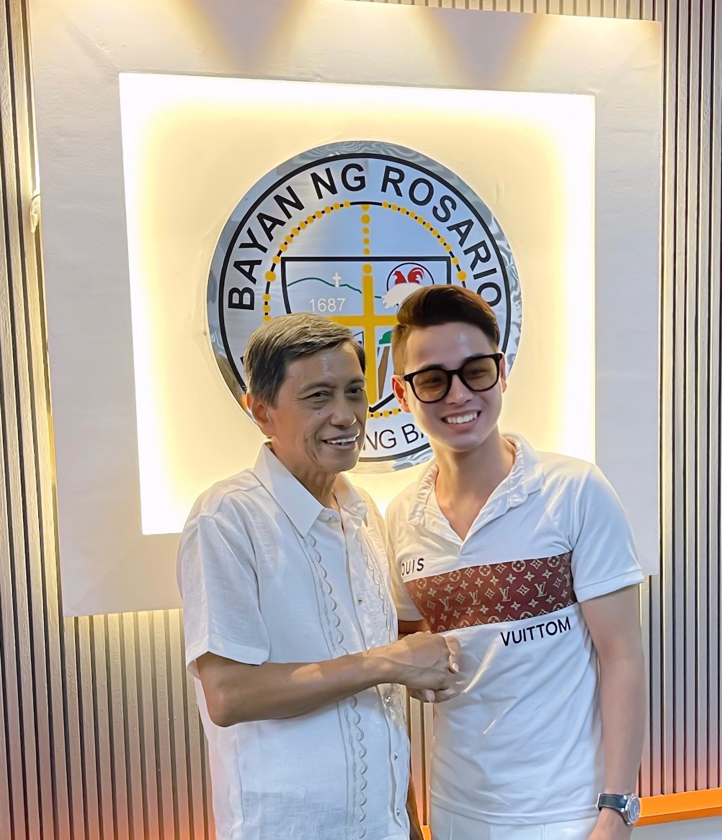Dương Long chụp hình lưu niệm cùng Phó thị trưởng của thị trấn Batangas - Philippines