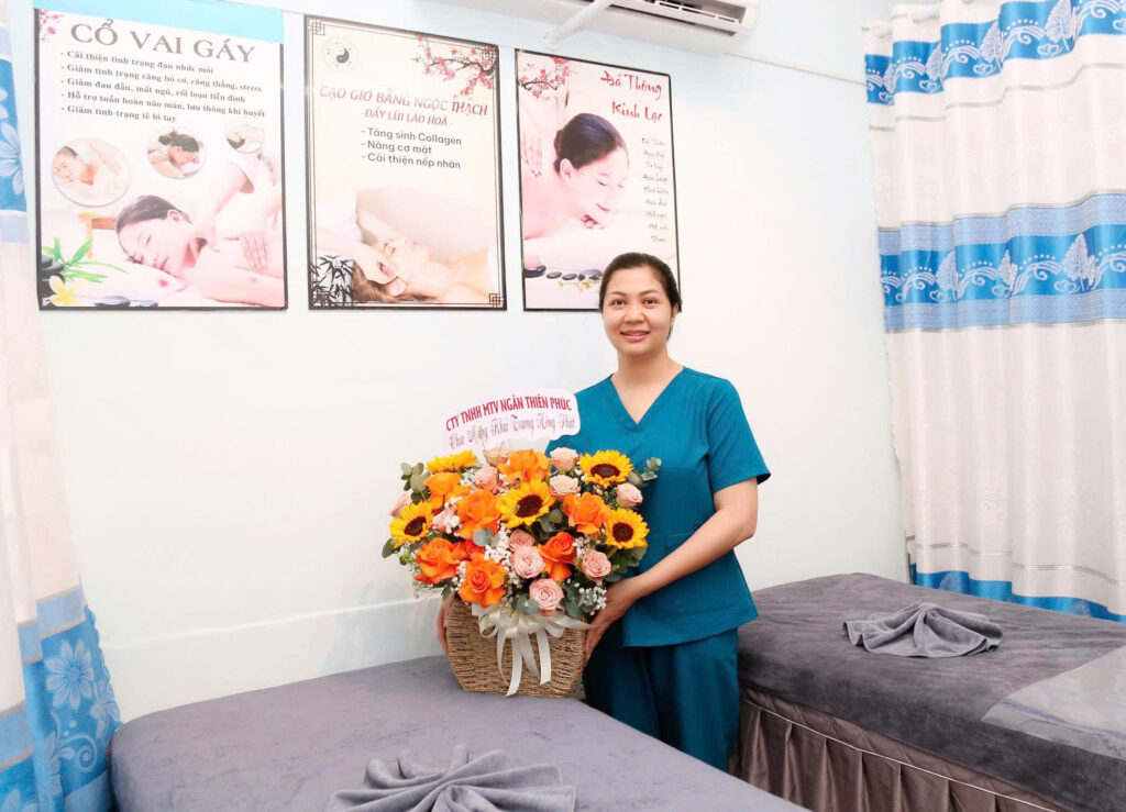 Chủ Spa: Chúng tôi tập trung vào trị liệu chuyên sâu cổ – vai – gáy, kết hợp các phương pháp tự nhiên an toàn như cạo gió bằng Ngọc Thạch giúp đả thông kinh lạc và làm đẹp da. Ngoài ra, dịch vụ gội đầu trị liệu vai – cổ – gáy cũng được nhiều khách hàng yêu thích, vì không chỉ gội đầu mà còn giúp giải tỏa căng thẳng, cải thiện giấc ngủ, nuôi dưỡng mái tóc.