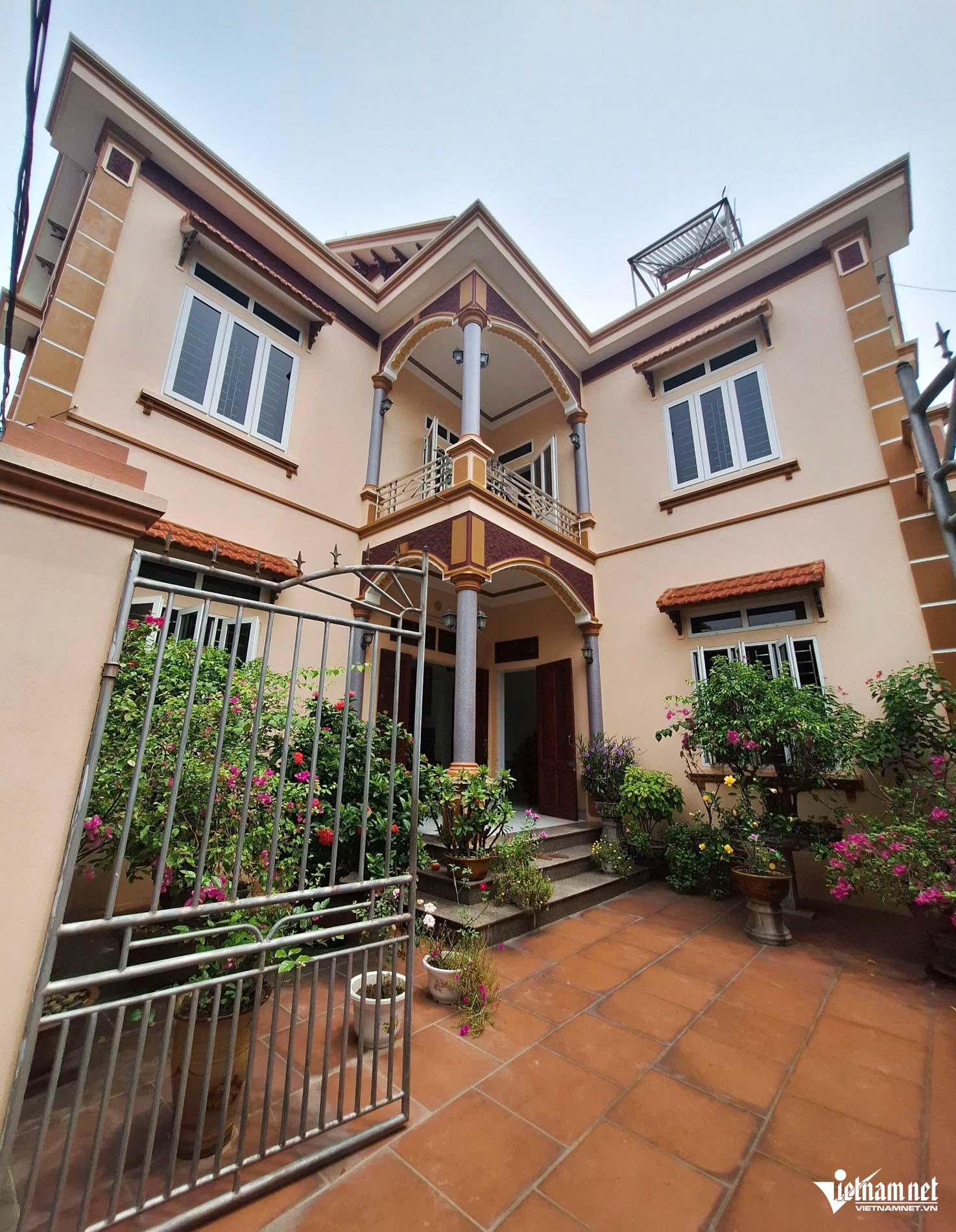 Nhà bà Thơm được xây 2 tầng kiên cố, bên trong có đầy đủ tiện nghi. Con gái bà nói nhà được xây năm 1991 nhưng trên nóc nhà ghi năm 2004
