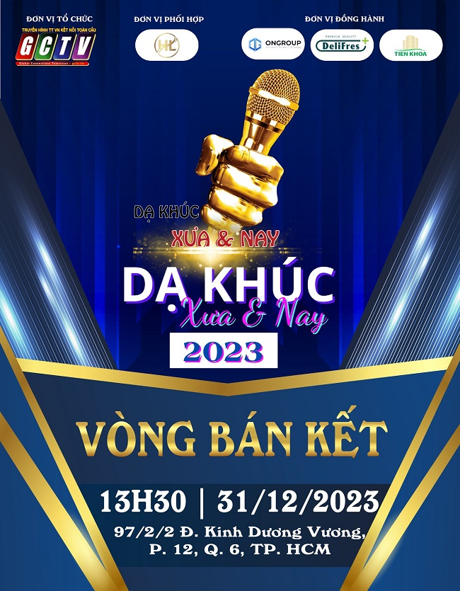 Đêm bán kết chương trình “Dạ khúc xưa và nay” sắp diễn ra vào ngày 31 tháng 12 năm 2023, tại Sân khấu Kim Thái Hoàng - Số 97/2/2 Kinh Dương Vương Phường 2, Quận 6, TP. Hồ Chí Minh. Với sự góp mặt của những tài năng nổi bật, đêm hội âm nhạc hứa hẹn mang đến cho khán giả những trải nghiệm đặc sắc.