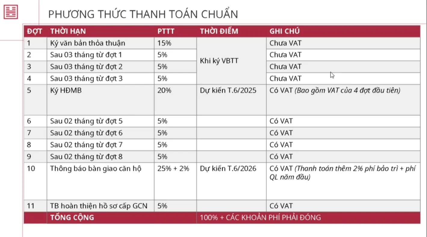 Ngoài ra, nhân viên sale của Cát Tường Land không quên đưa ra hàng loạt các phương thức thanh toán từ chủ đầu tư. Đơn cử, sau khi giữ chỗ 50 triệu, khách hàng phải chờ cho đến ngày tổ chức mở bán, giỏ hàng được chủ đầu tư đưa ra thì nhà đầu tư chọn căn, sau đó ký "văn bản thoả thuận" để mua sản phẩm của dự án này.