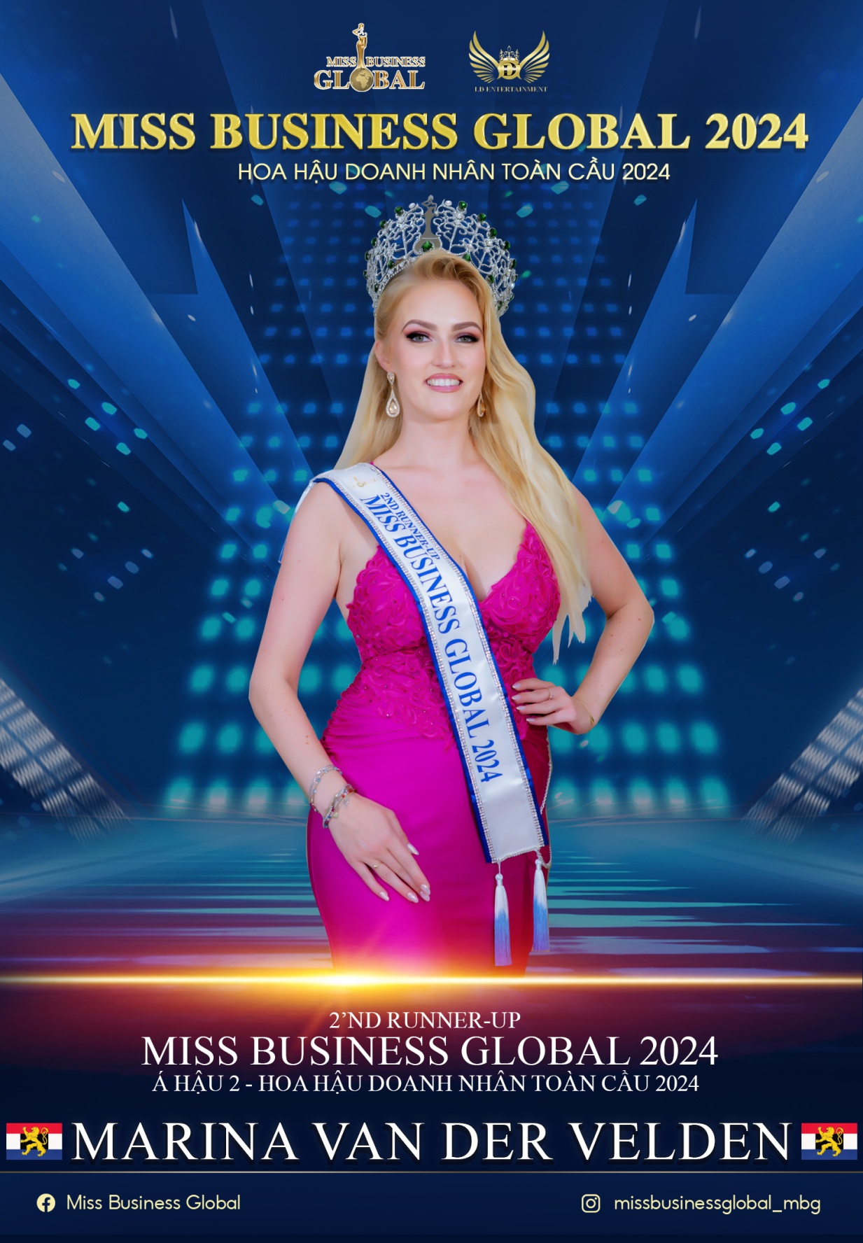 Giải thưởng 2’ND Runner-up Miss Business Global (Á Hậu 2 - Hoa Hậu Doanh Nhân Toàn Cầu 2024) thuộc về người đẹp Marina Van Der Velden đến từ Benelux.