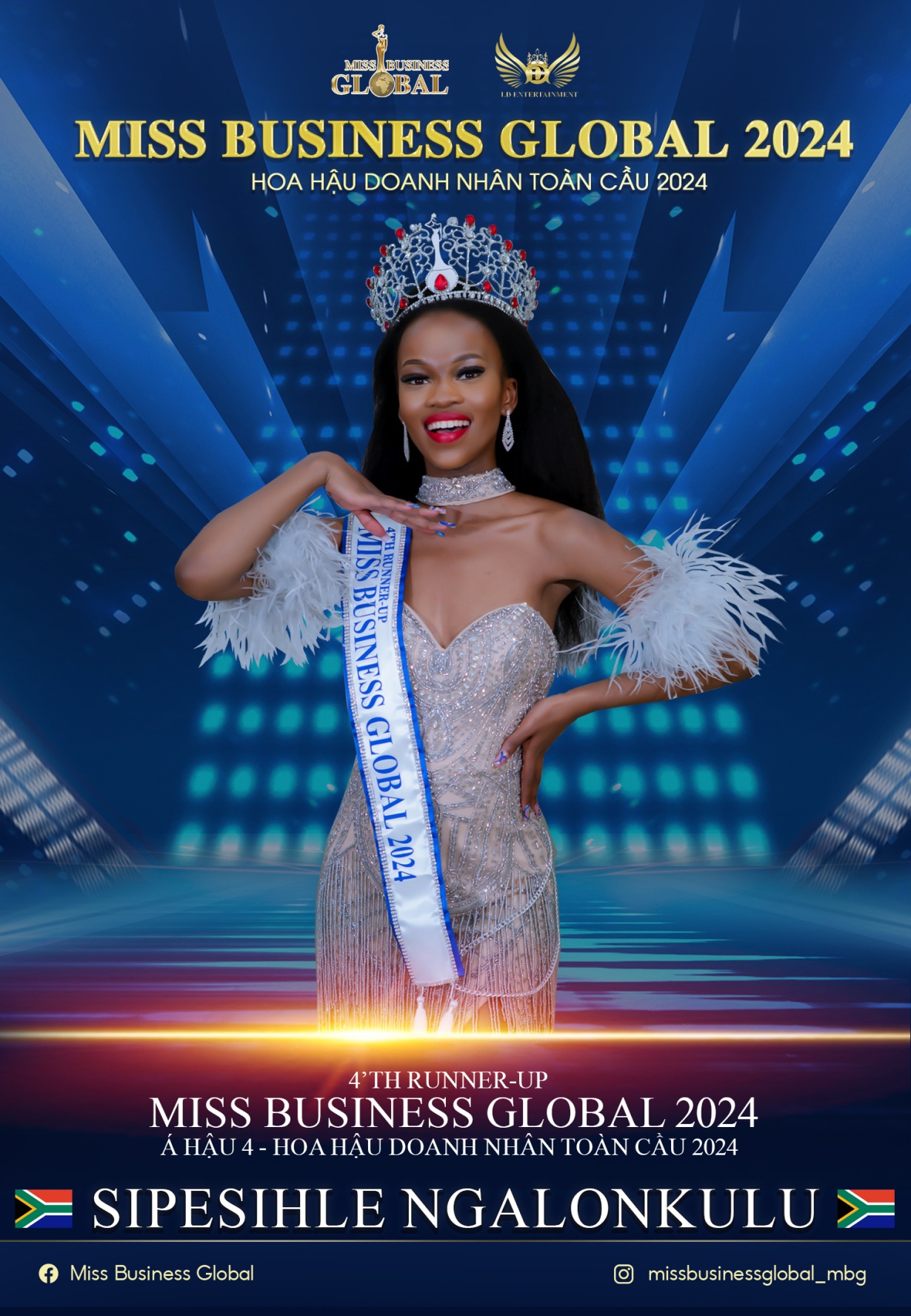 Giải thưởng 4’TH Runner-up Miss Business Global (Á Hậu 4 - Hoa Hậu Doanh Nhân Toàn Cầu 2024) thuộc về người đẹp Sipesihle Ngalonkulu đến từ Nam Phi.