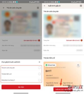 - Bước 3: Tại giao diện chính, bạn chỉ cần bấm vào tùy chọn Xuất trình giấy tờ. Lúc này, ứng dụng sẽ tự động hiển thị thông tin giấy tờ tương ứng.