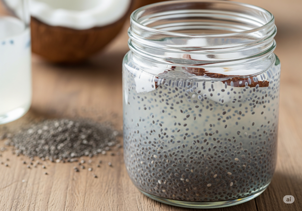 Nước dừa và hạt chia là sự kết hợp giàu dinh dưỡng cho cơ thể-ẢNH: AI