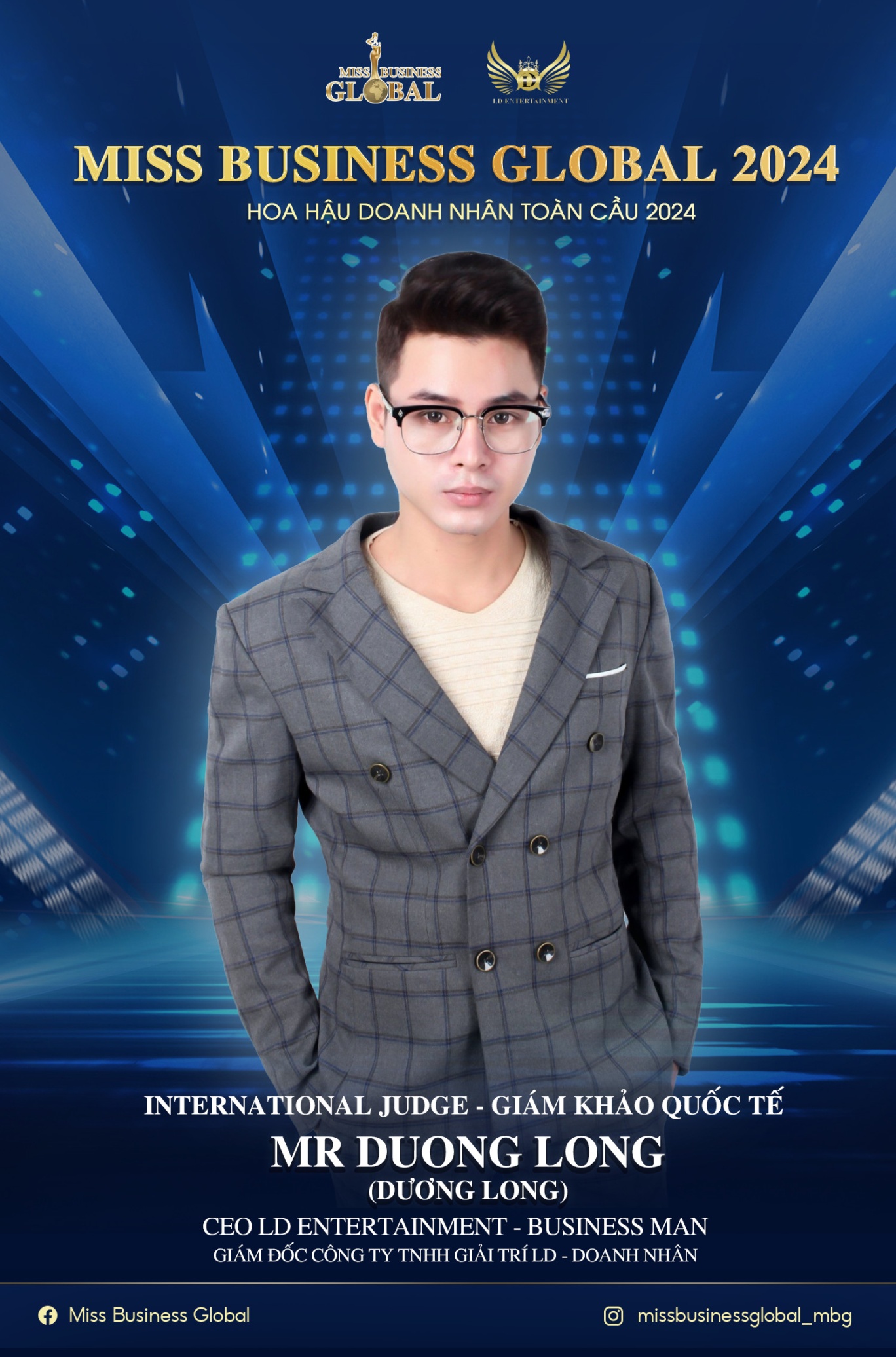 Ban tổ chức cuộc thi Miss Business Global - Hoa Hậu Doanh Nhân Toàn Cầu 2024 đã chính thức công bố lần lượt các thành viên trong Ban giám khảo Quốc tế trên trang Face Book & Instagram chính thức của cuộc thi. Doanh nhân Dương Long là trưởng BGK Quốc tế cuộc thi năm nay.