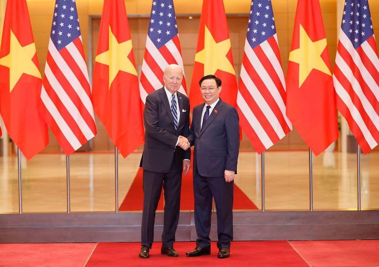 Chủ tịch Quốc hội Vương Đình Huệ chào mừng Tổng thống Joe Biden thăm cấp nhà nước tới Việt Nam, chúc mừng cuộc hội đàm rất thành công của Tổng thống với Tổng Bí thư Nguyễn Phú Trọng, đồng thời ủng hộ hoan nghênh hai nước xác lập quan hệ Đối tác chiến lược toàn diện vì hòa bình, hợp tác và phát triển bền vững, mở ra chương mới trong quan hệ hai nước, kể cả kênh Đảng, Quốc hội và giao lưu nhân dân.