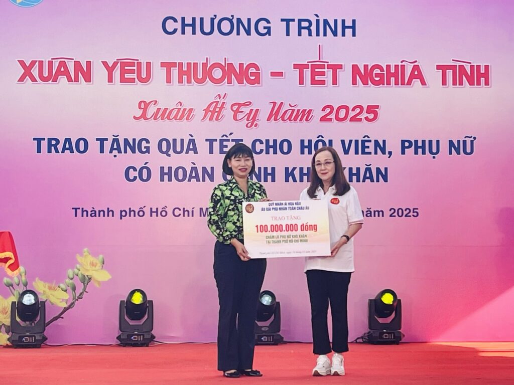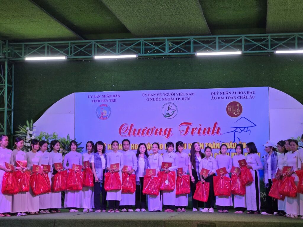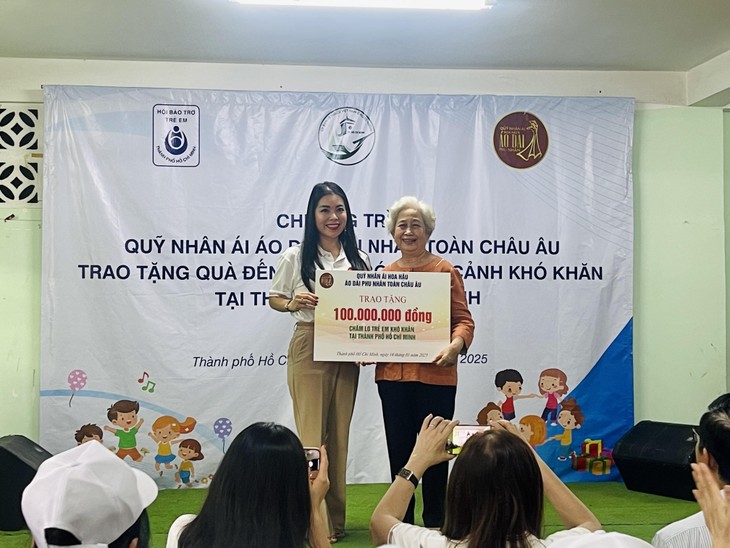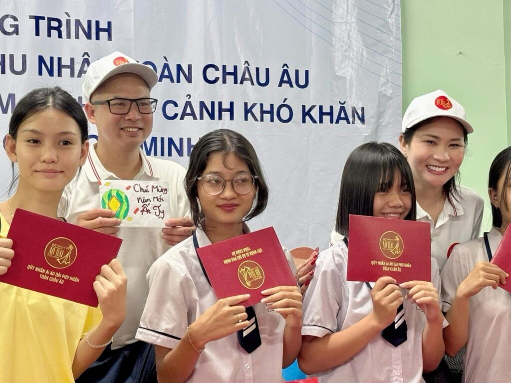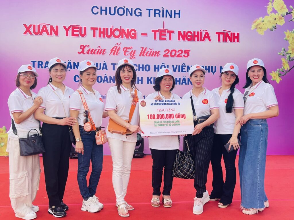 Trong ngày 16,17/1/2025 đoàn kiều bào là các thành viên của Quỹ nhân ái - Hoa hậu Áo dài phu nhân toàn châu Âu bắt đầu hành các hoạt động trong hành trình thiện nguyện “Xuân an vui 2025”. Đoàn đã trao tặng 350 triệu đồng và những món quà Tết cho các em nhỏ và phụ nữ nghèo TPHCM và Bến Tre.