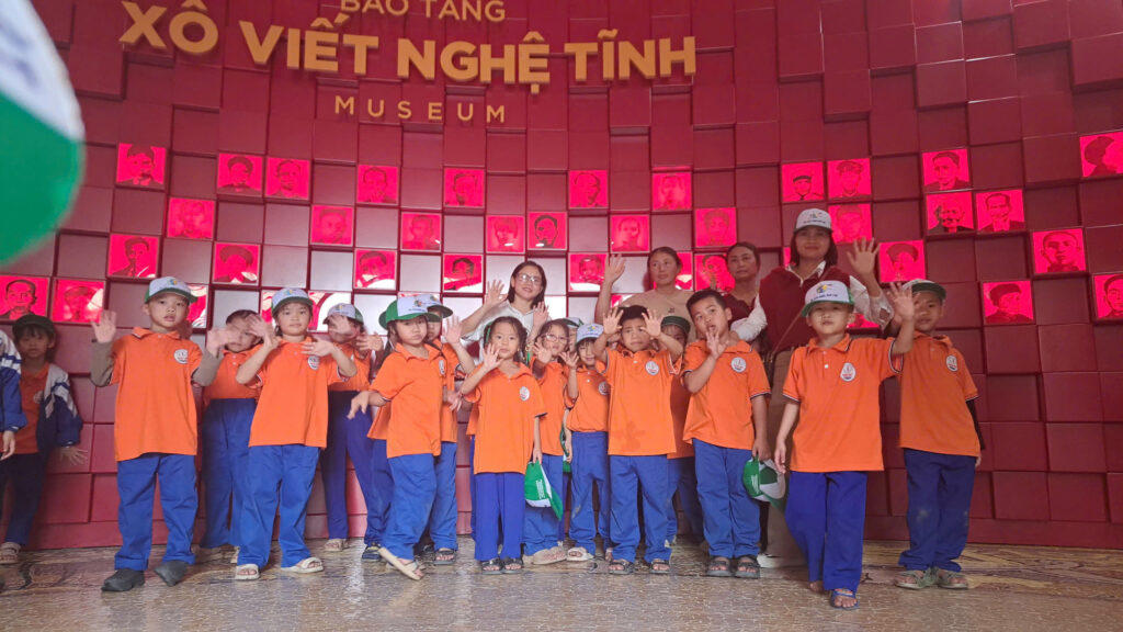 Các em được xem mô hình khảo cổ, hiện vật về phong trào Xô Viết Nghệ Tĩnh qua hình ảnh, mô hình 3D dễ hiểu. Khu trải nghiệm thực tế ảo giúp các bé "chạm" vào danh lam thắng cảnh Nghệ An mà không cần di chuyển xa. Thầy cô tổ chức trò chơi đố vui đơn giản như "Đây là hiện vật gì?" hay "Nghệ An có biển đẹp nào?", khuyến khích các em trả lời, giao tiếp với bạn bè và hướng dẫn viên.