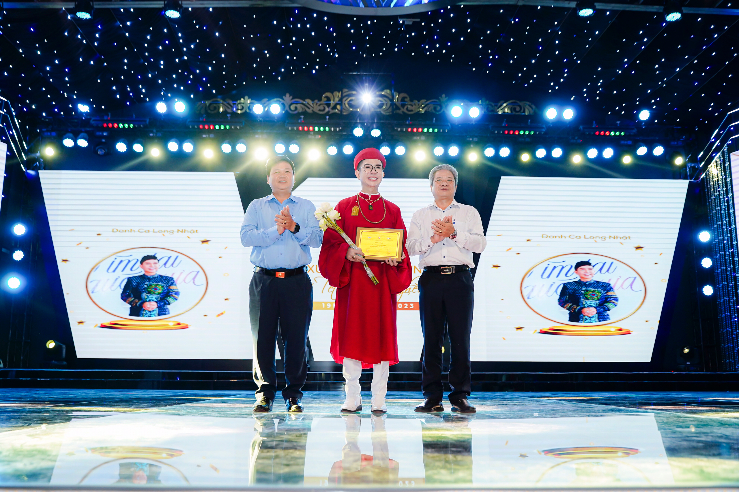 ông Đỗ Đại Đồng phó Chủ tịch UBMTTQ tỉnh Bình Phước và ông Vũ Đình Trung phó Chủ tịch UBMTTQ tỉnh Đồng Nai trao bằng vinh danh cho danh ca Long Nhật