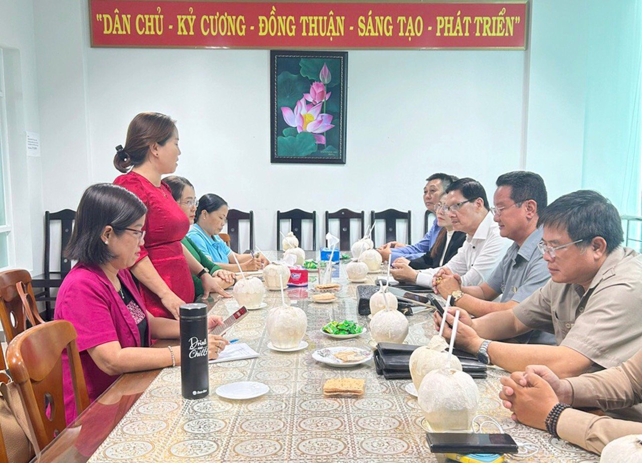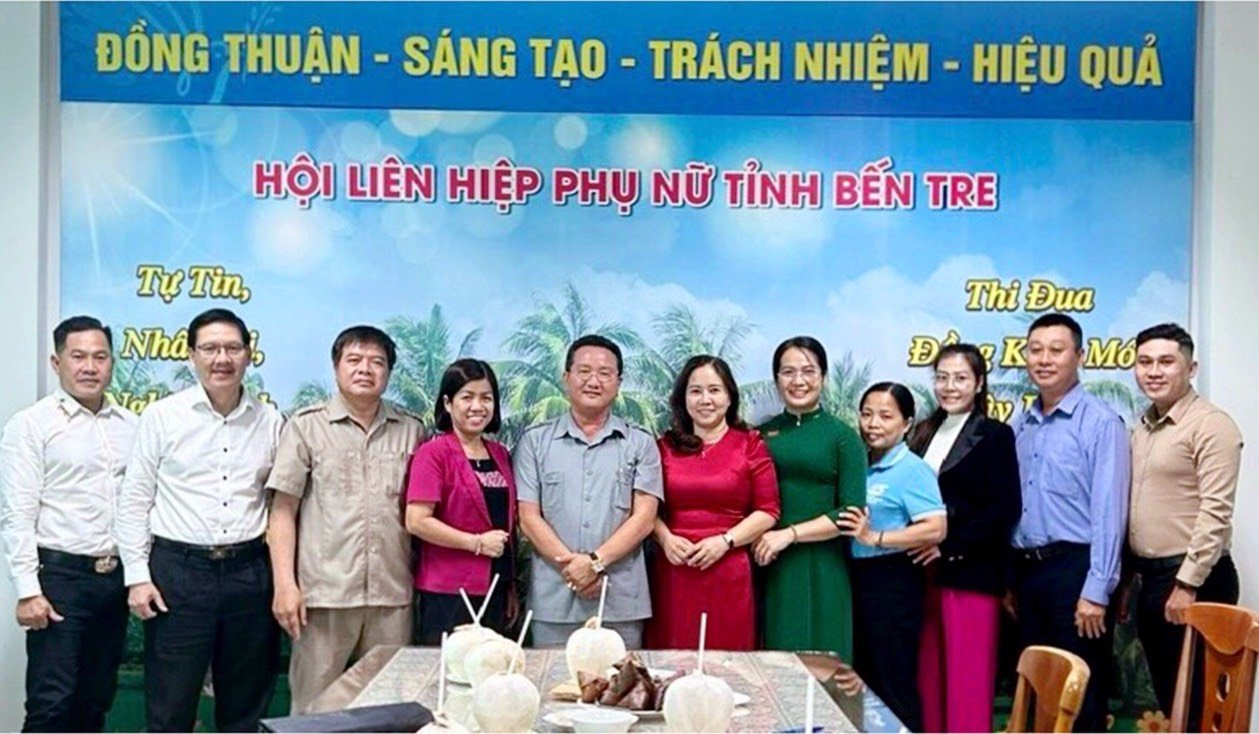 Tiếp đoàn có đồng chí Nguyễn Thị Kim Thoa – Chủ tịch Hội LHPN tỉnh Bến Tre; cùng tiếp còn có Phó chủ tịch Hội LHPN Lê Hoàng Oanh và Võ Ái Hoà.