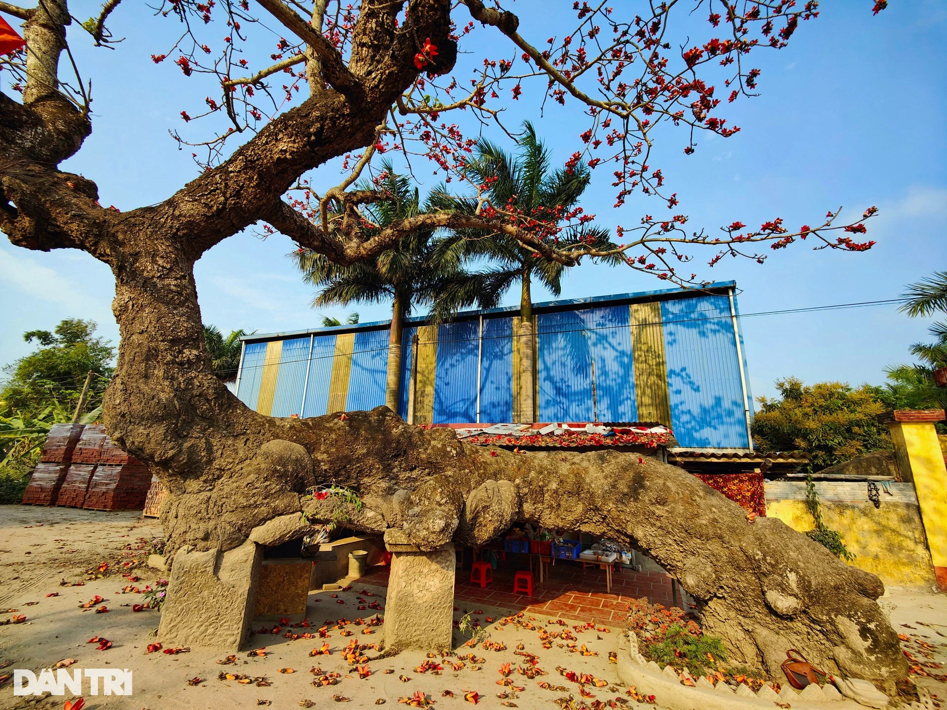Cây hoa gạo cổ với tuổi đời hàng trăm năm ở huyện Thái Thụy, tỉnh Thái Bình có hình dáng như một con rồng đang vươn mình lên trời xanh.