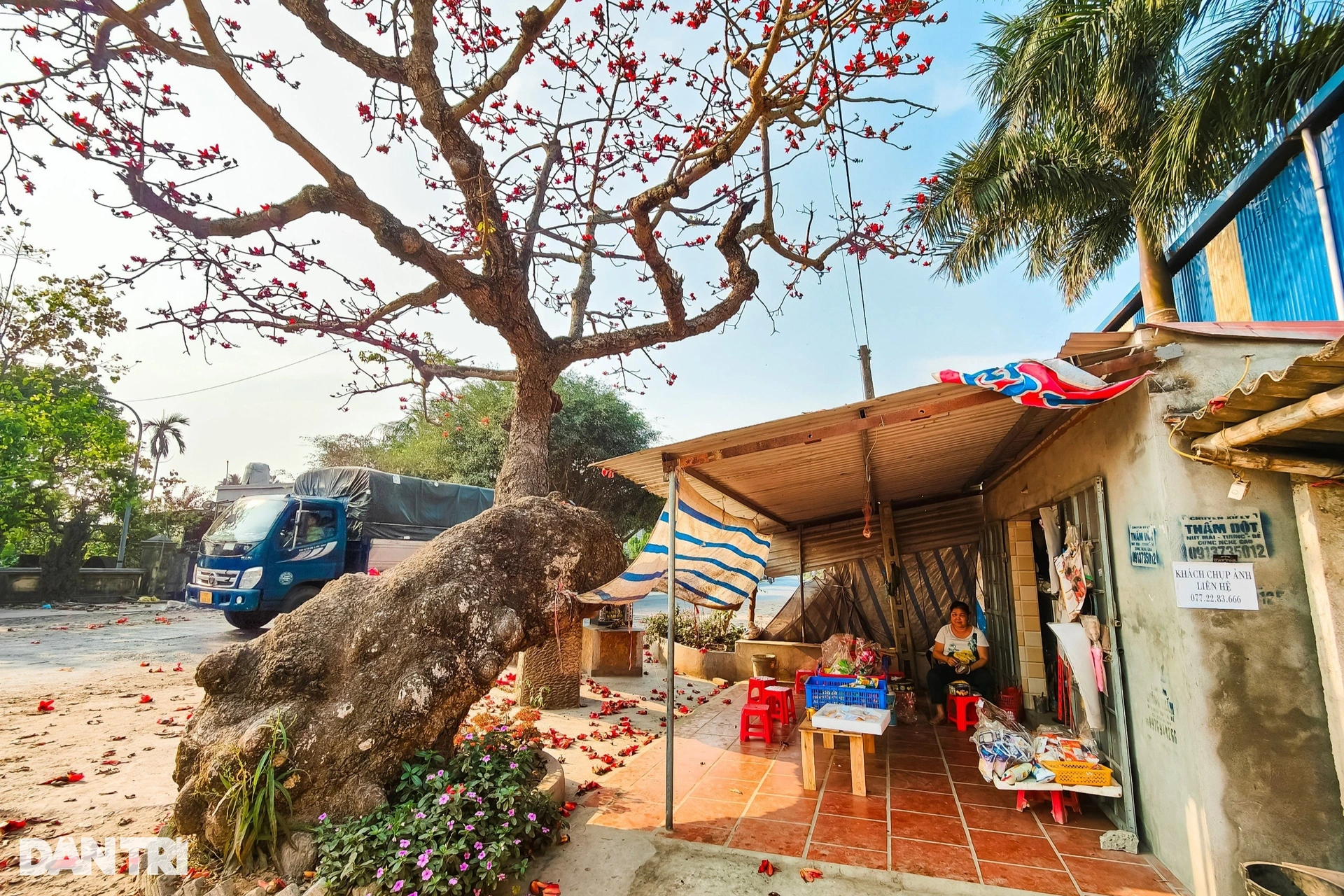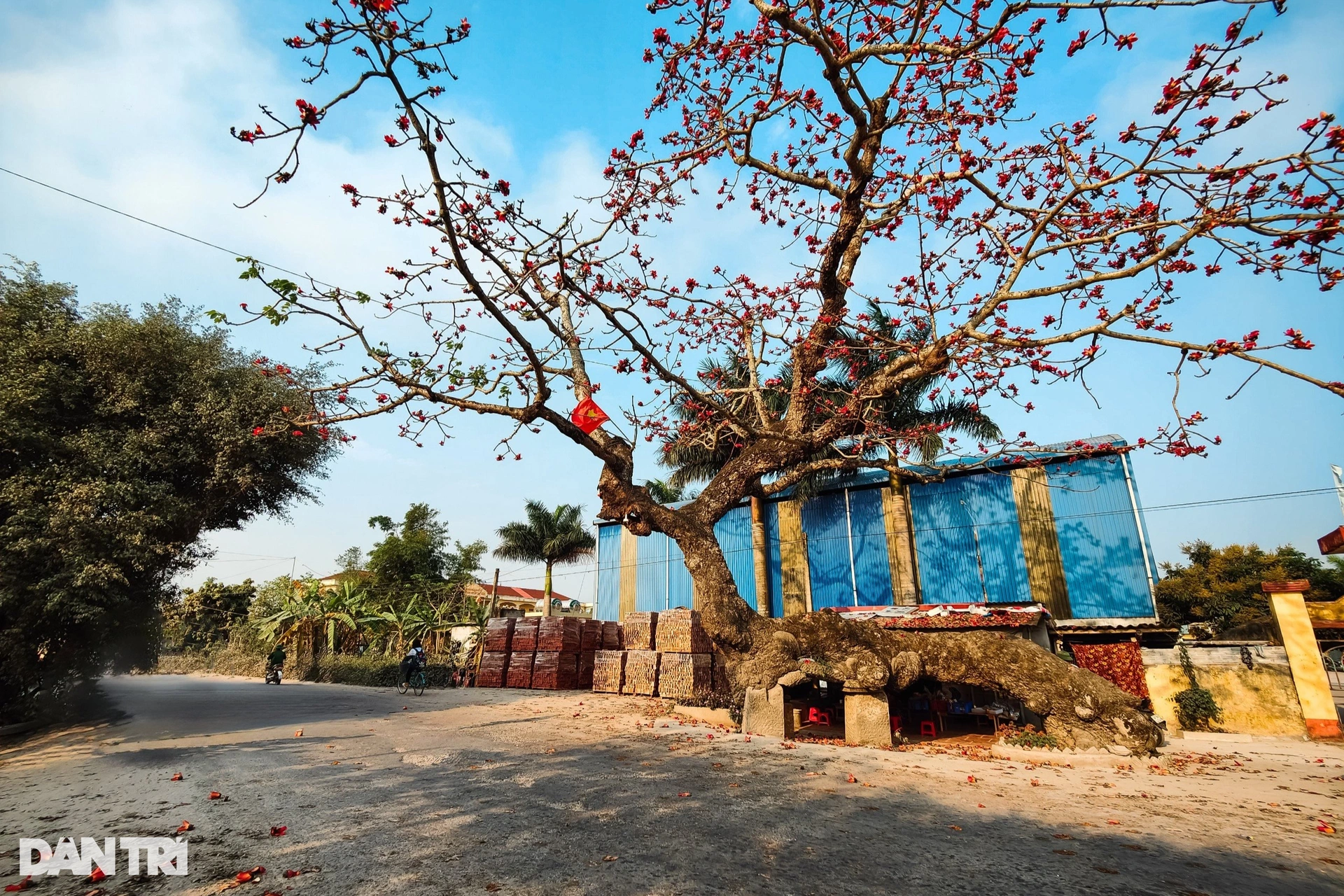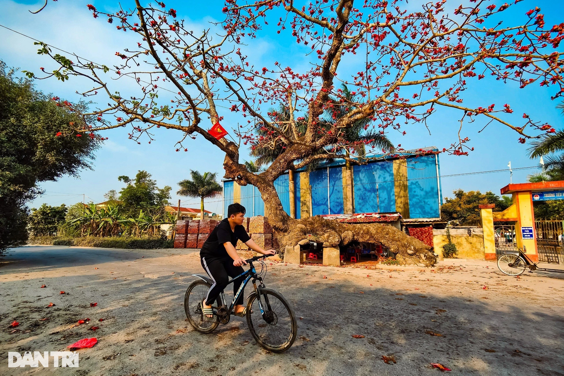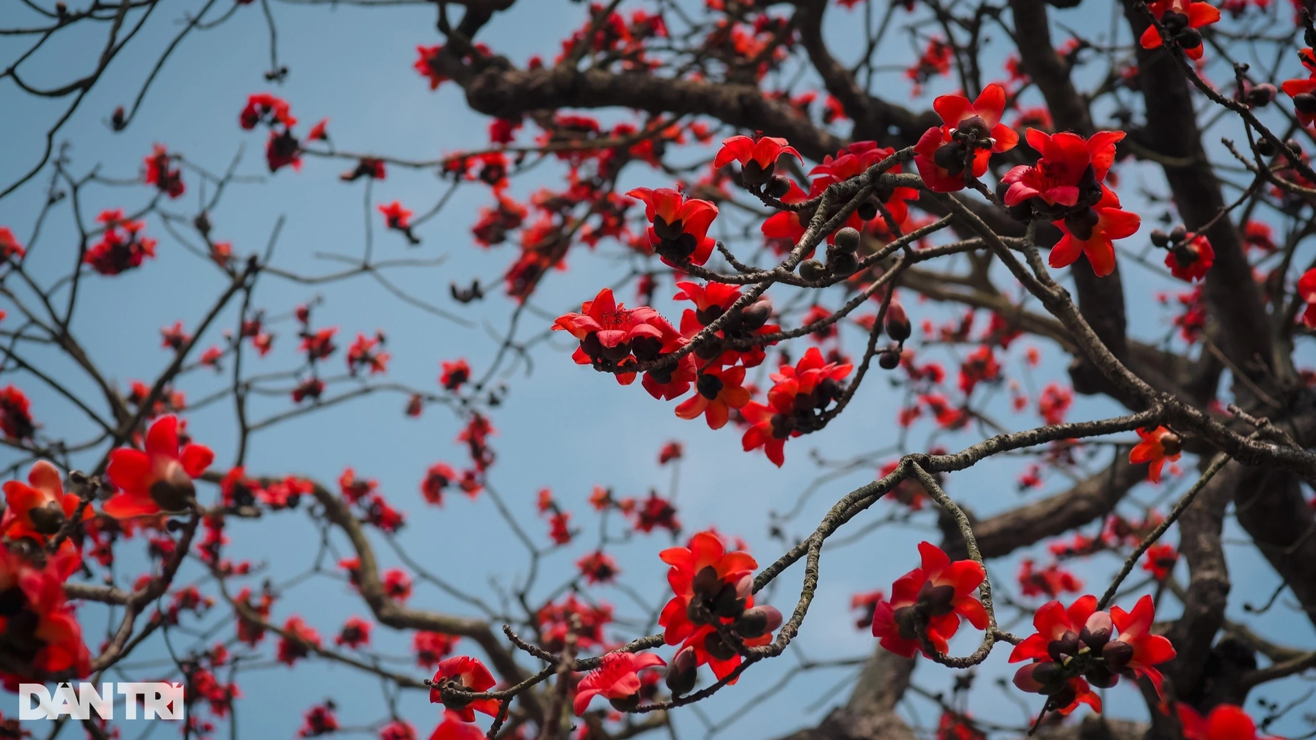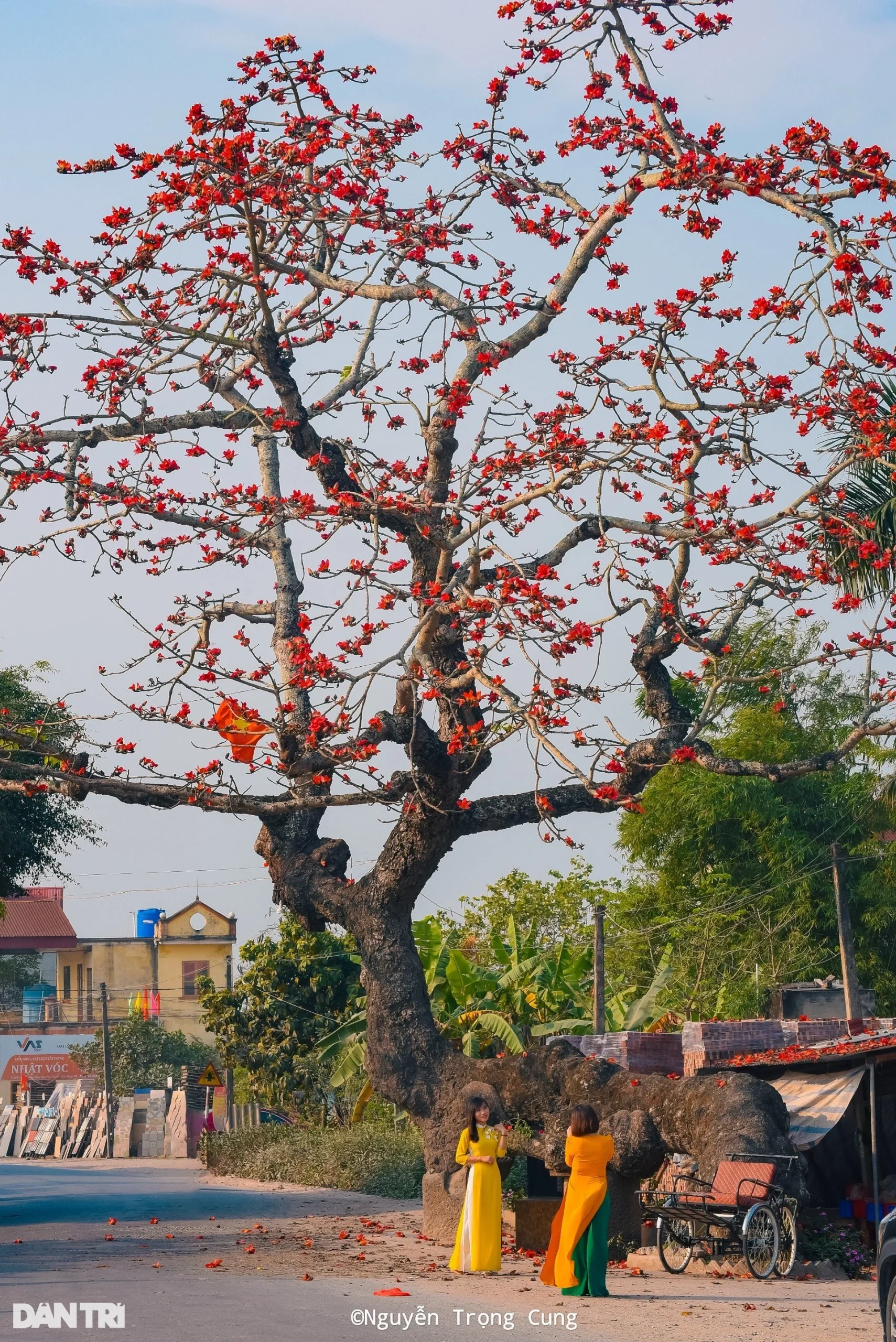 Thời điểm này, cây hoa gạo chưa bung nở hoa rực rỡ như trong ảnh.