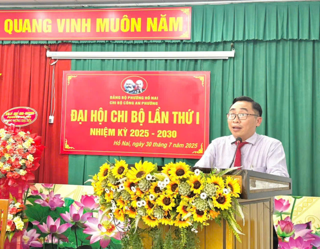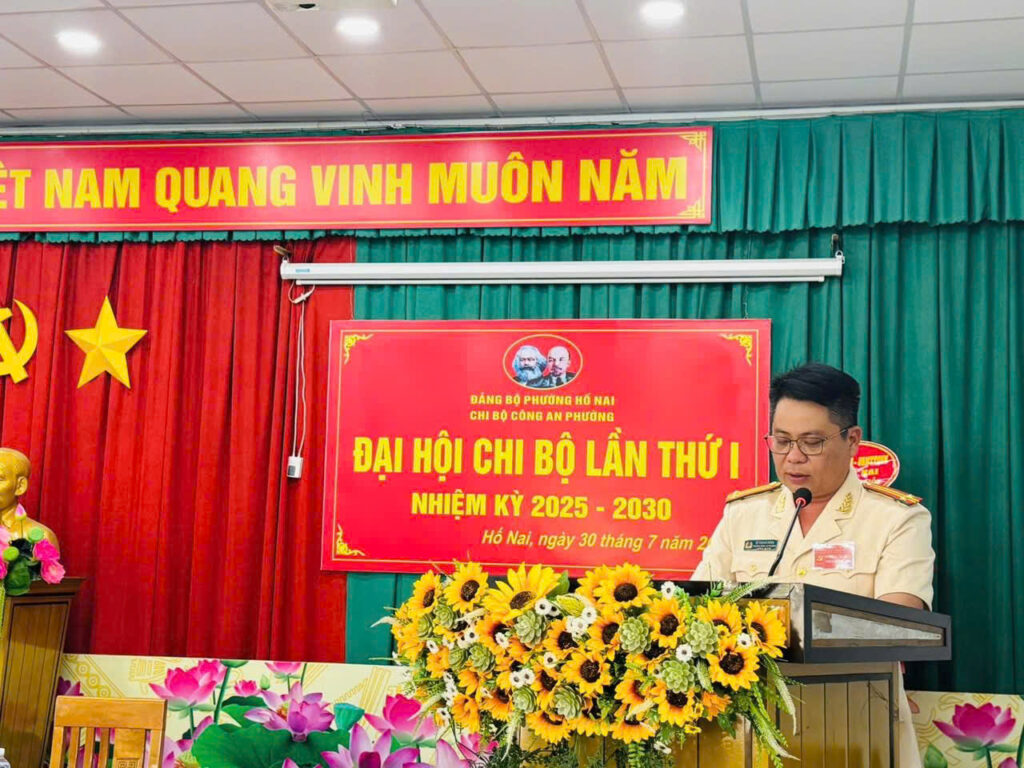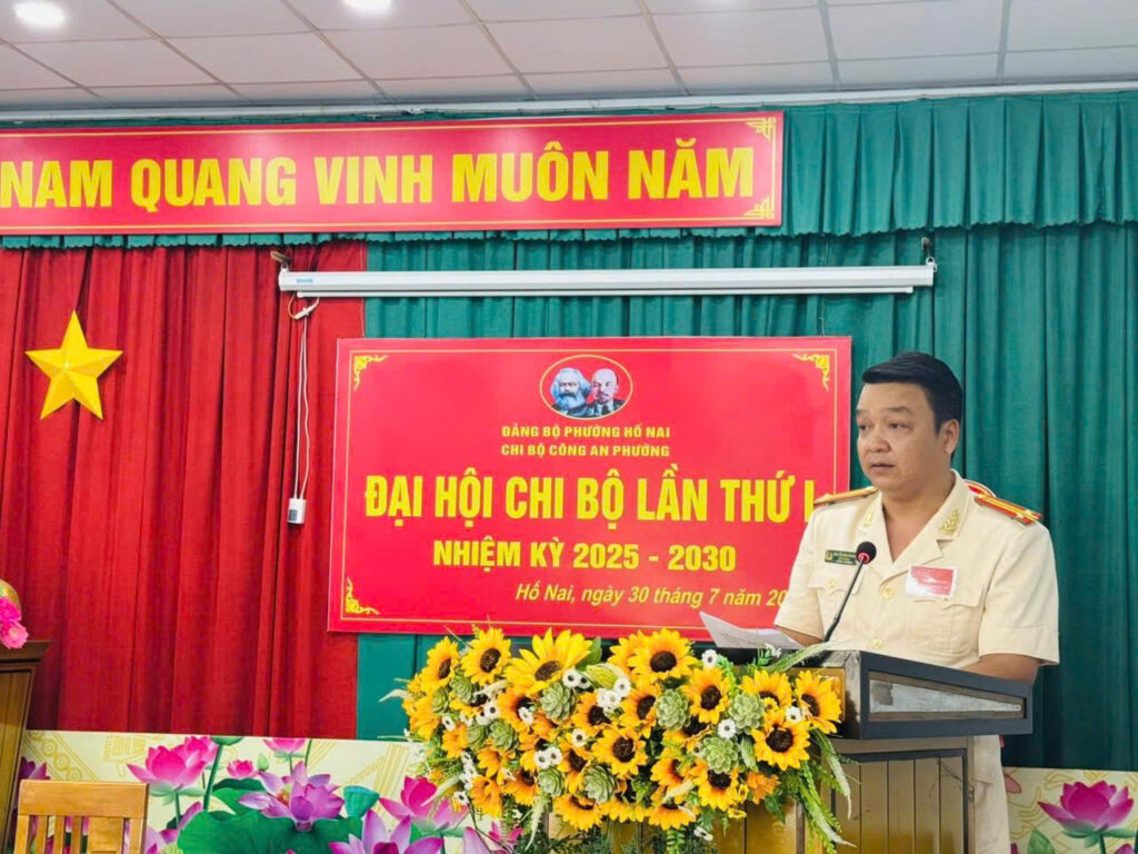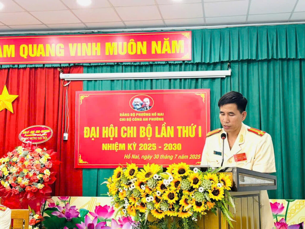 Ngày 30/7/2025, Chi bộ Công an phường Hố Nai long trọng tổ chức Đại hội Chi bộ nhiệm kỳ 2025 – 2030. Tham dự và chỉ đạo Đại hội có đồng chí Cao Duy Thái – Phó Bí thư Đảng uỷ, Chủ tịch UBND phường, cùng sự hiện diện của toàn thể đảng viên trong Chi bộ Công an phường.