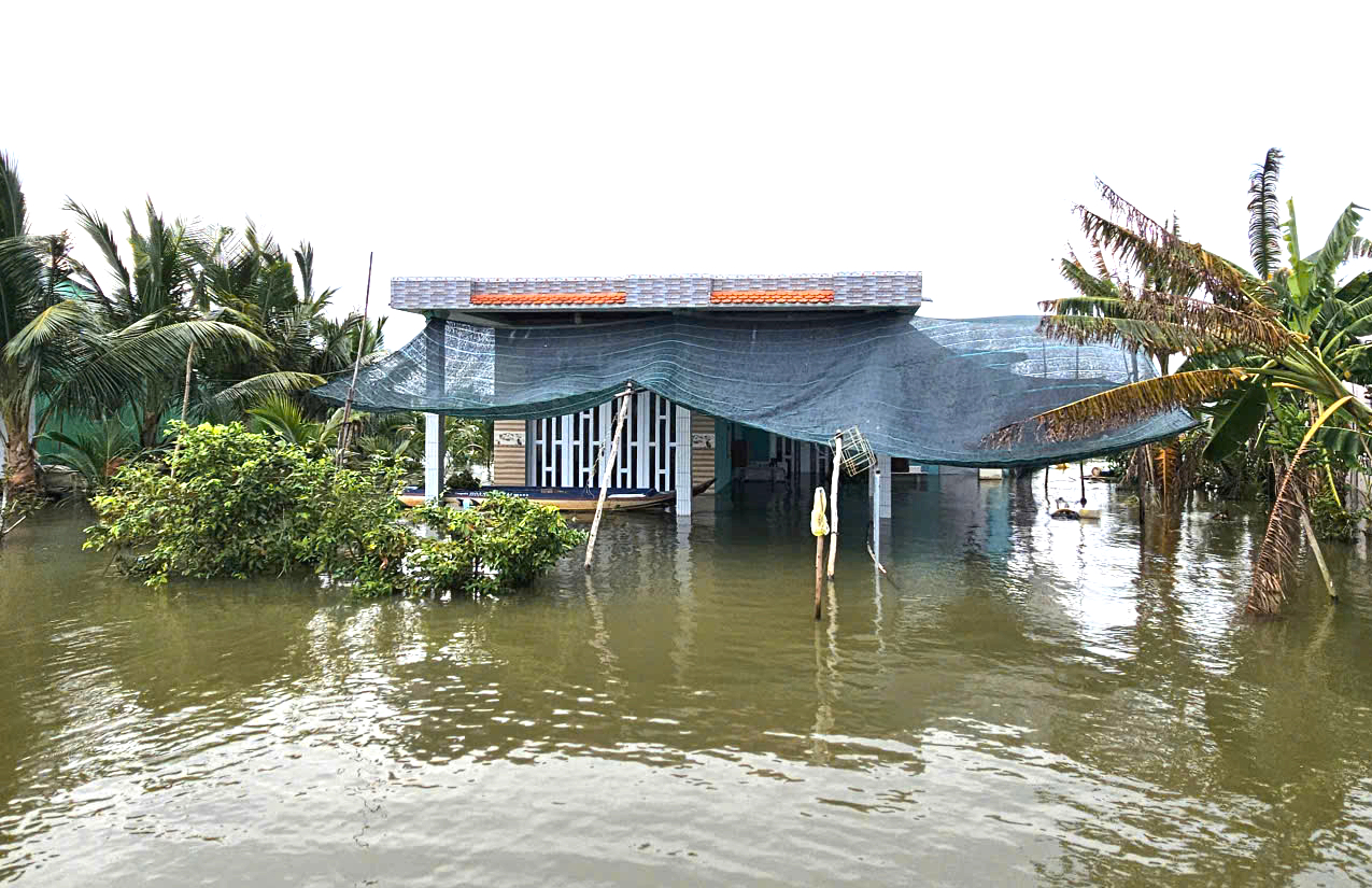 Một căn nhà ở ấp Láng Sen, xã Vĩnh Châu, Tân Hưng ngập trong nước lũ - Ảnh: KIM THẠNH