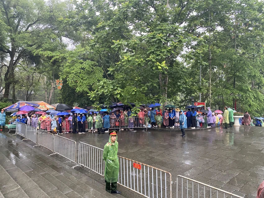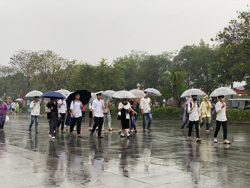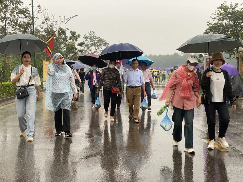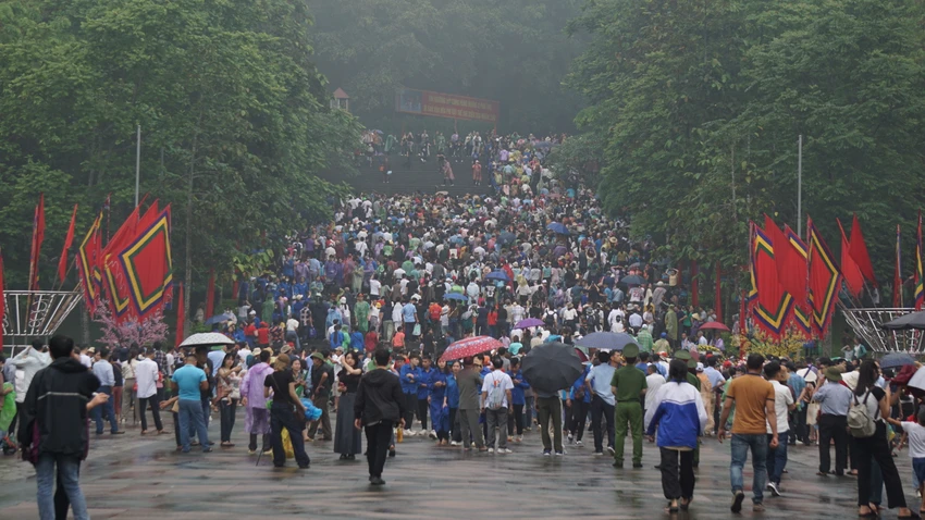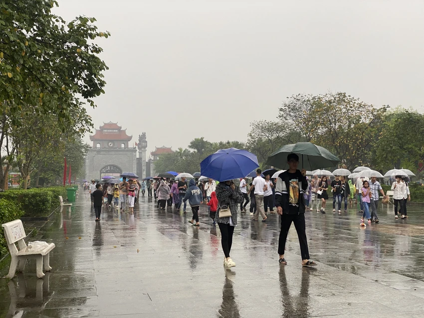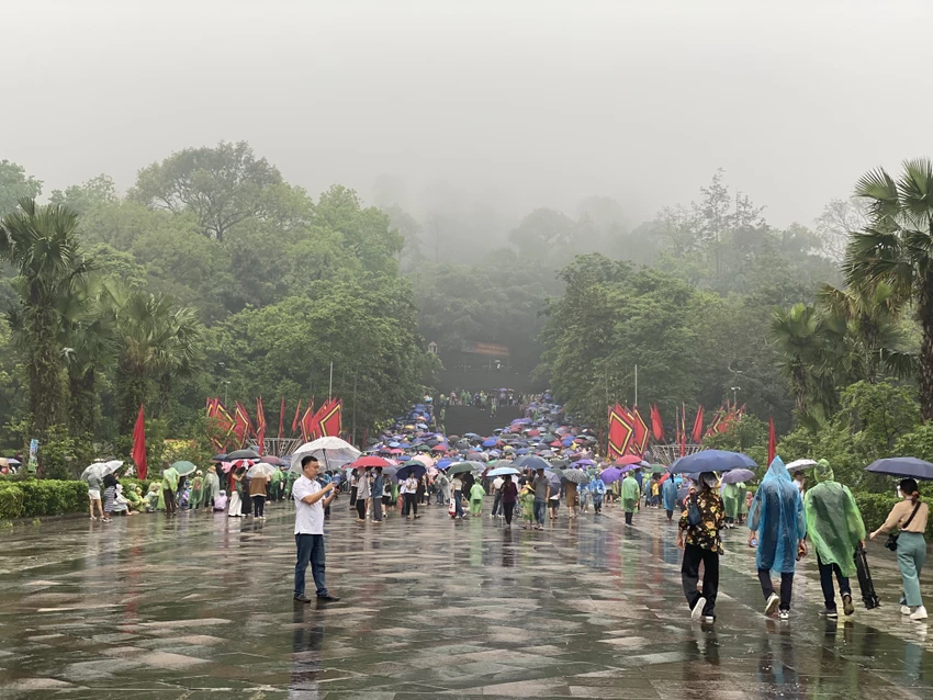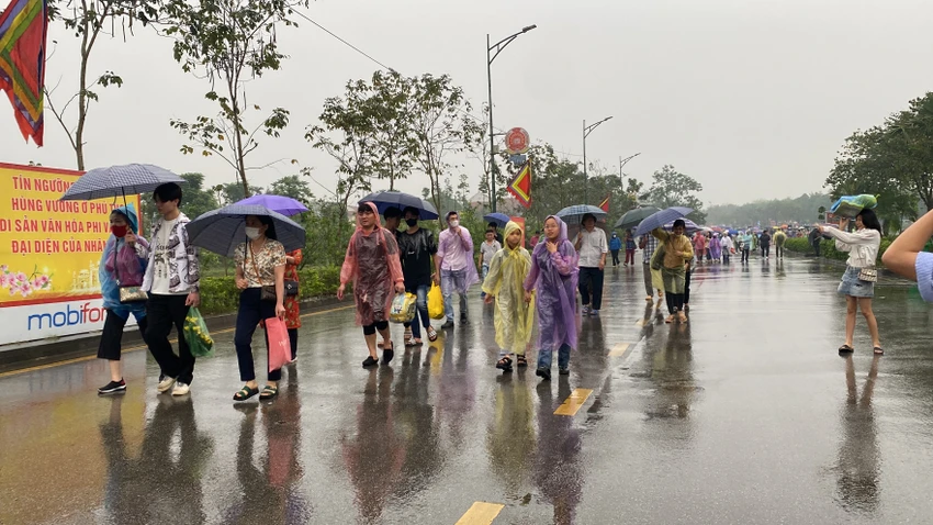 Thời tiết mưa dày không ngăn được dòng người đổ về đền Hùng tri ân công đức tổ tiên ngày chính hội Giỗ Tổ Hùng Vương.