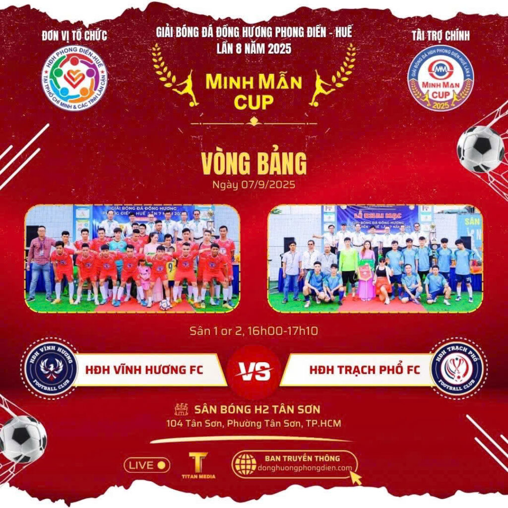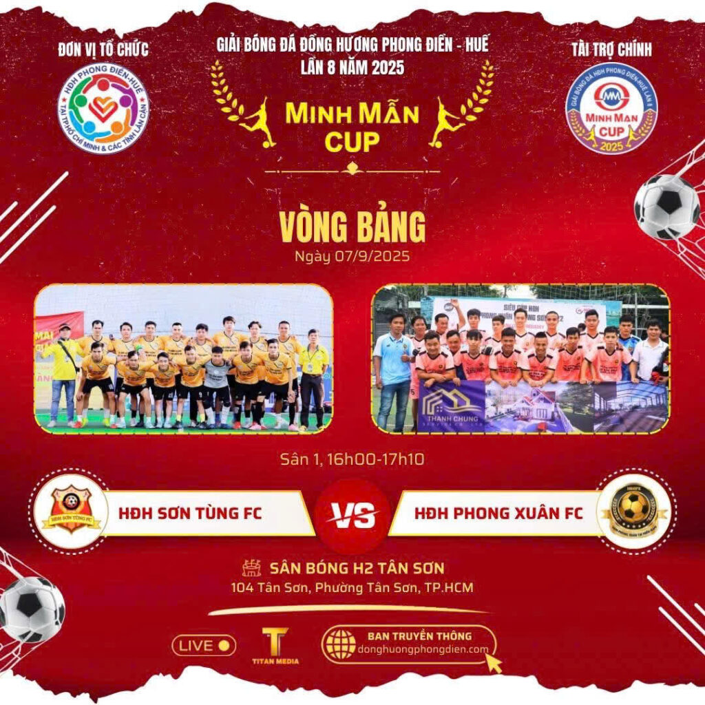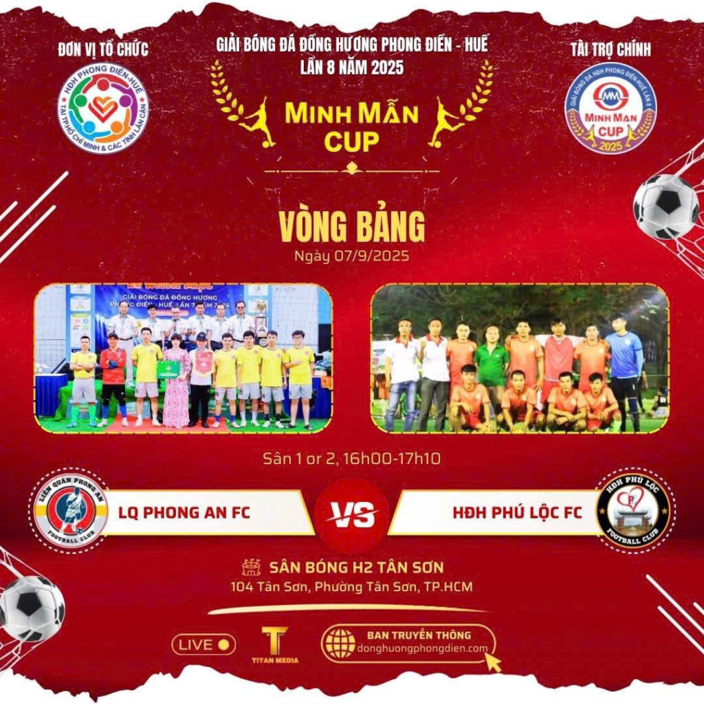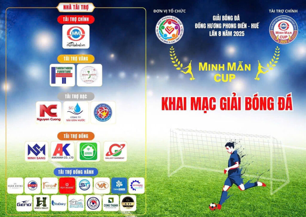 Chiều ngày 7/9, tại sân bóng đá H2 Tân Sơn (TP.HCM), Hội đồng hương Phong Điền Huế đã long trọng khai mạc Giải bóng đá đồng hương Phong Điền Huế lần thứ 8 năm 2025 – tranh cúp Minh Mẫn.