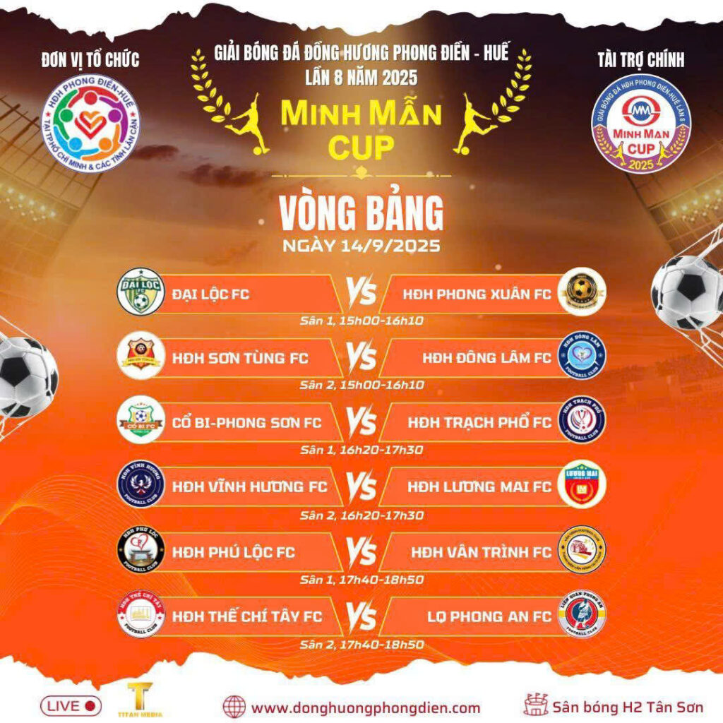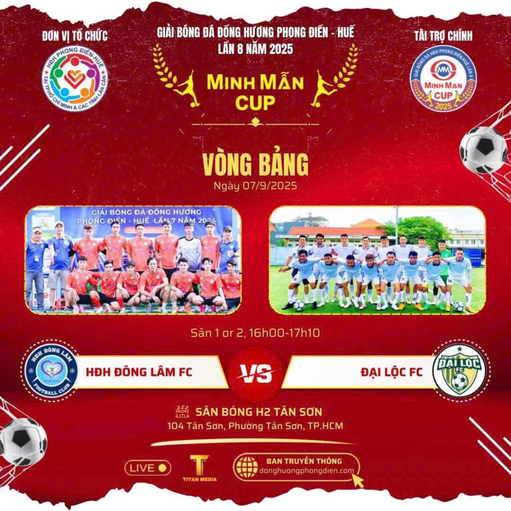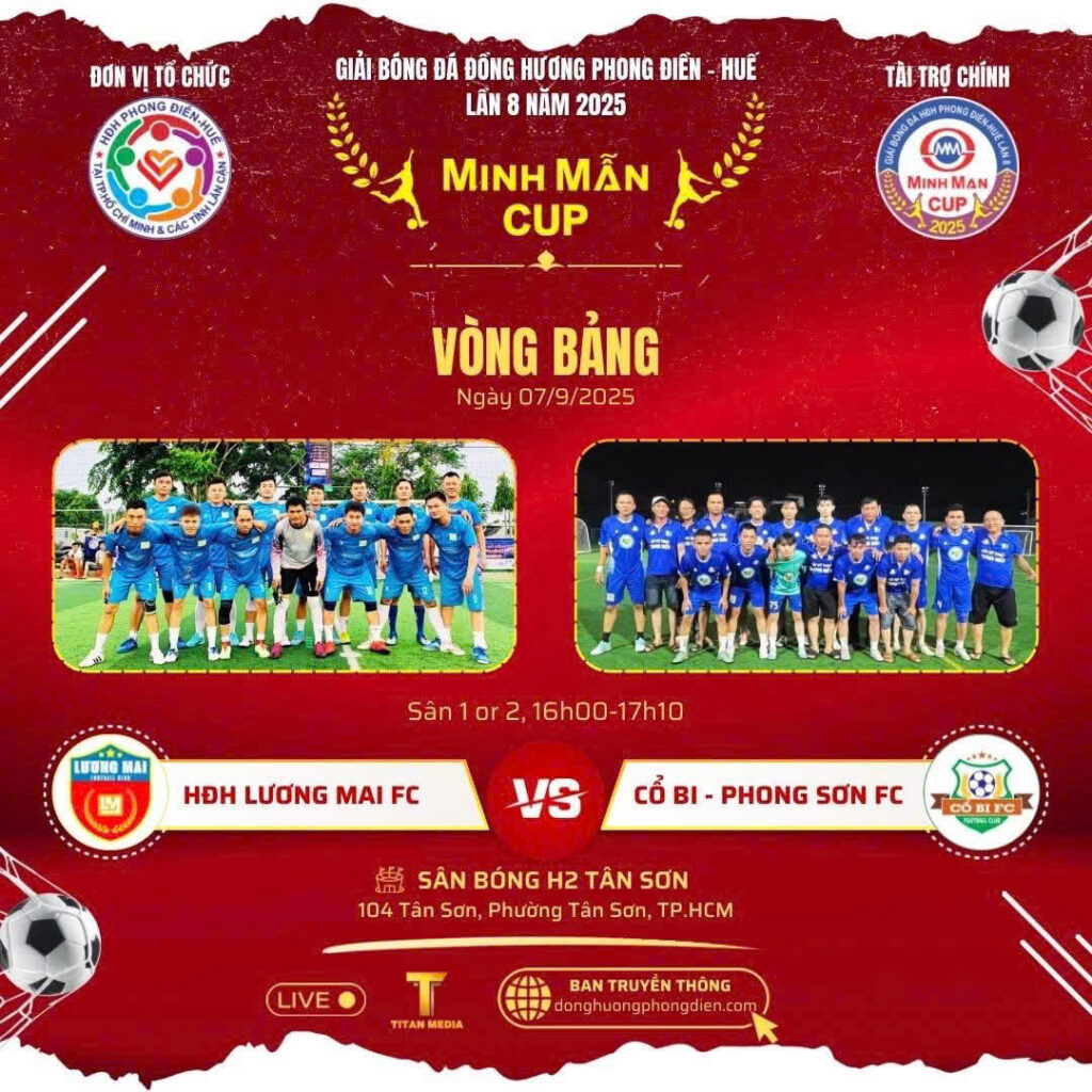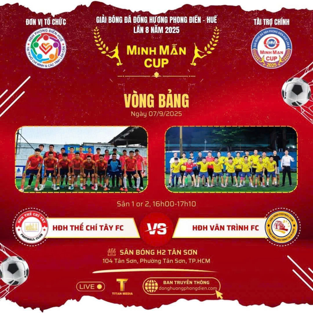 Chiều ngày 7/9, tại sân bóng đá H2 Tân Sơn (TP.HCM), Hội đồng hương Phong Điền Huế đã long trọng khai mạc Giải bóng đá đồng hương Phong Điền Huế lần thứ 8 năm 2025 – tranh cúp Minh Mẫn.