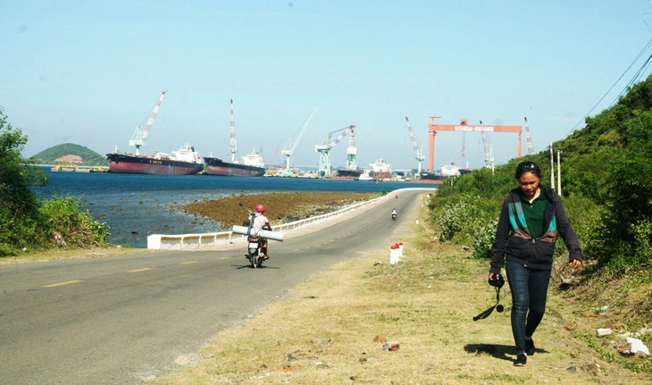 Một đoạn thuộc đường đến khu vực nhà máy đóng tàu Hyundai Vinashin và dự án nhà máy đóng tàu STX tại thị xã Ninh Hòa (Khánh Hòa, có vụ án và bị can vừa bị khởi tố) - Ảnh: PHAN SÔNG NGÂN
