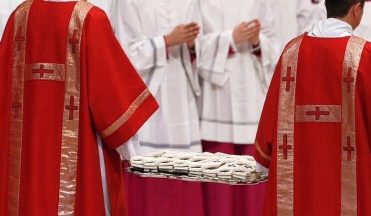Trong thánh lễ, Đức Phanxicô làm phép các dây pallium, dây làm bằng len trắng được đặt trên mộ Thánh Phêrô và dành cho các tổng giám mục được bổ nhiệm trong năm nay. Với một số giám mục, dây pallium được trao cho những người có mặt ở Đền thờ. Hai giám mục Pháp có trong số này: tổng giám mục Norbert Turini, giáo phận Montpellier, và tổng giám mục Laurent Le Boulc’h, giáo phận Lille.