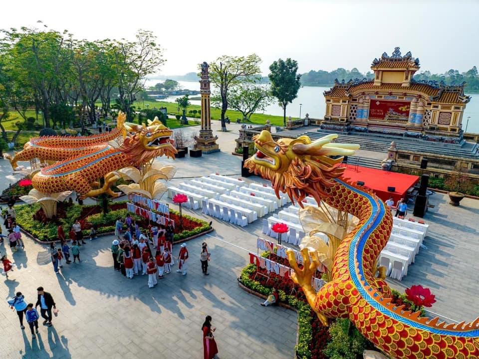 Huế là vùng đất gắn liền với triều đại nhà Nguyễn, sở hữu hình ảnh con rồng đặc trưng. Đây cũng là nguyên mẫu để các kiến trúc sư nghiên cứu chất liệu, địa danh lịch sử, cũng như tham khảo và làm việc với các chuyên gia, nhà sử học để thiết kế đạt chuẩn mực về kích thước, tỷ lệ, chi tiết. Từ đó, con rồng của Hội hoa Xuân Huế xuất hiện trước công chúng không có dáng vẻ hiền từ như nhà Lý, không quá cương mãnh như nhà Trần, Lê, vẫn giữ sự uy nghi nhưng mang trong mình nét gần gũi, bình dị và giàu tính biểu cảm - những dáng dấp đặc trưng của con rồng triều Nguyễn.