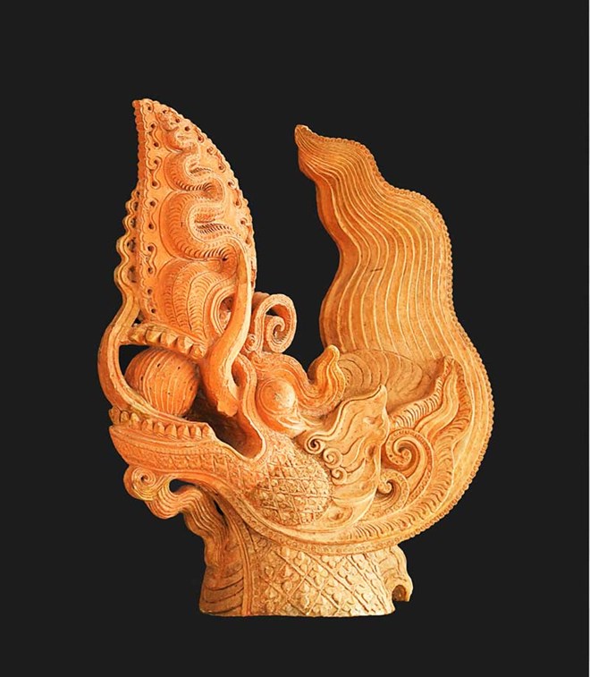 Tượng đầu rồng bằng đất nung trang trí đầu nóc mái, thời Lý, thế kỷ XI - XII, khu di tích Hoàng Thành Thăng Long. Ảnh: Trần Đức Anh Sơn