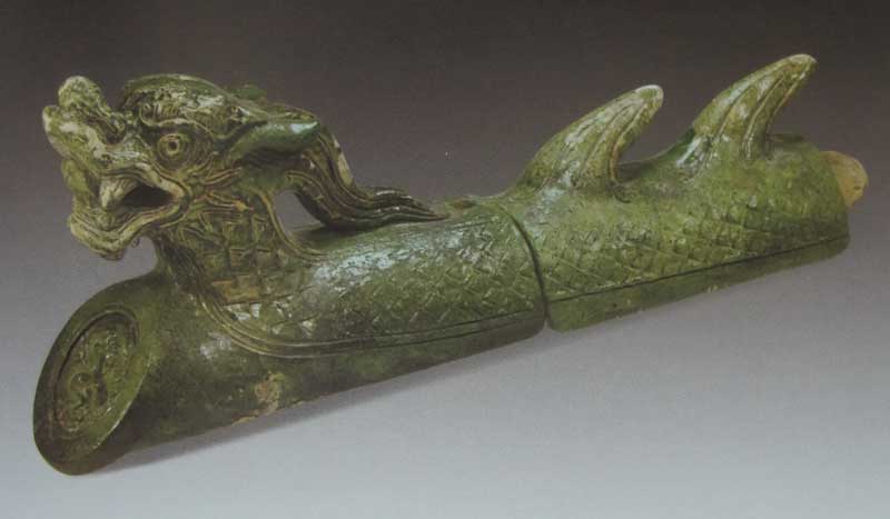 Ngói ống tạo hình rồng, men lục, thời Lê sơ, thế kỷ XV, Khu di tích Hoàng Thành Thăng Long. Ảnh: Trần Đức Anh Sơn