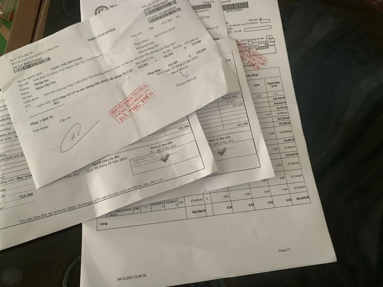 Hóa đơn của chị Châu Thị Thúy Nhi (35 tuổi), ngụ ấp Bình Điện, xã Bình Tịnh, huyện Tân Trụ, Long An khi nhập viện bệnh viện đa khoa Long An. Ảnh: Thiên Long