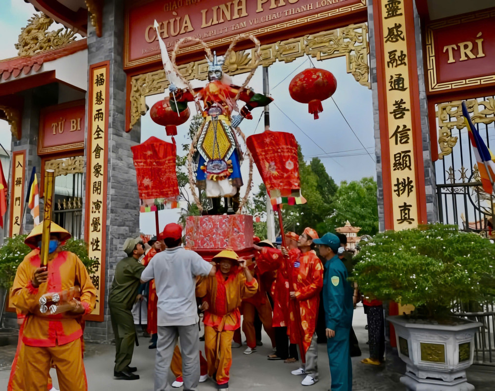 Nghi thức Phóng đăng hướng tới sự giác ngộ, giải thoát chúng sanh, diễn ra trên sông Tầm Vu. Ghe phóng đăng là một chiếc ghe chở một linh thú, theo tuần tự Long, Lân, Quy, Phụng, cứ mỗi năm làm một con khổng lồ với đèn nhấp nháy đủ màu.