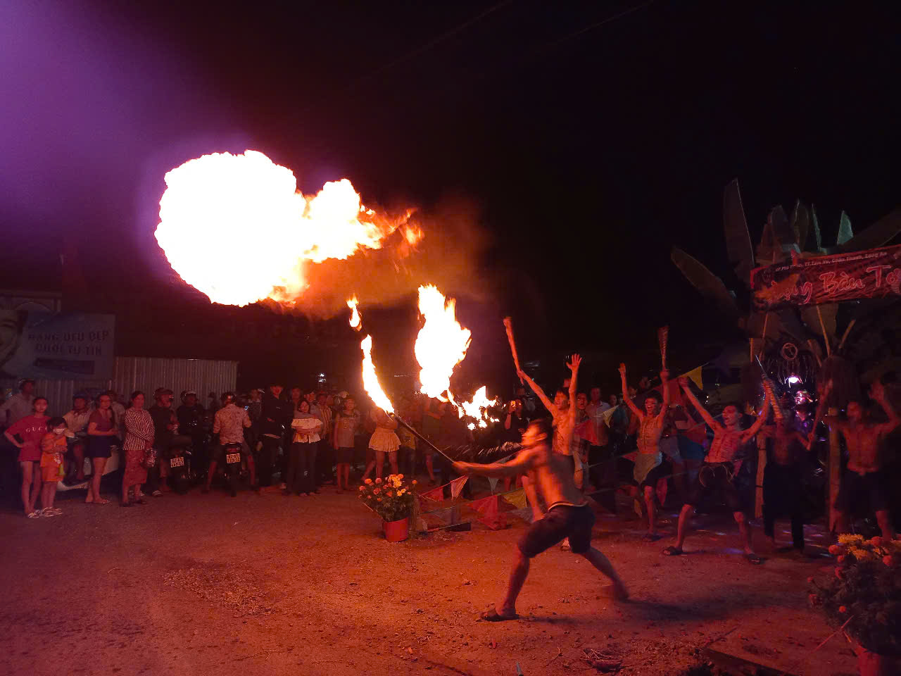 Nghi thức Khai kinh tụng cầu an do các nhà sư phụ trách để cầu an cho cộng đồng. Nghi thức cúng tế nghĩa sĩ trận vong do bổn đạo Cao Đài Tiên Thiên đảm nhiệm. Tiếp theo là nghi thức Đề phan liệt sĩ do vị sư cả Phật giáo chủ trì. Sang ngày 16 tháng Giêng, lễ cúng cô hồn được tiến hành tại miếu Âm Nhơn.