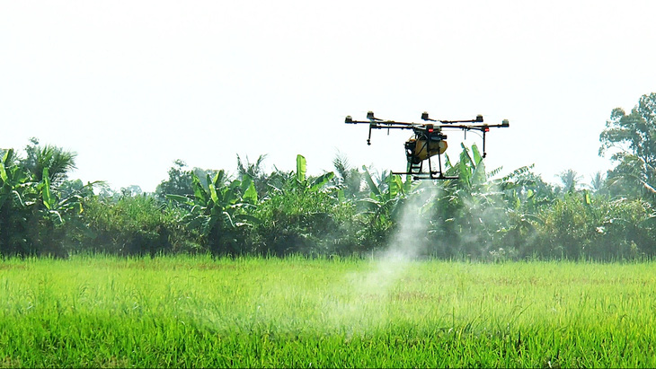 Vài năm trở lại đây, trào lưu sử dụng thiết bị bay không người lái (drone) để phun, xịt thuốc trừ sâu hay gieo sạ, bón phân trong sản xuất lúa diễn ra ồ ạt ở các tỉnh miền Tây Nam Bộ.
