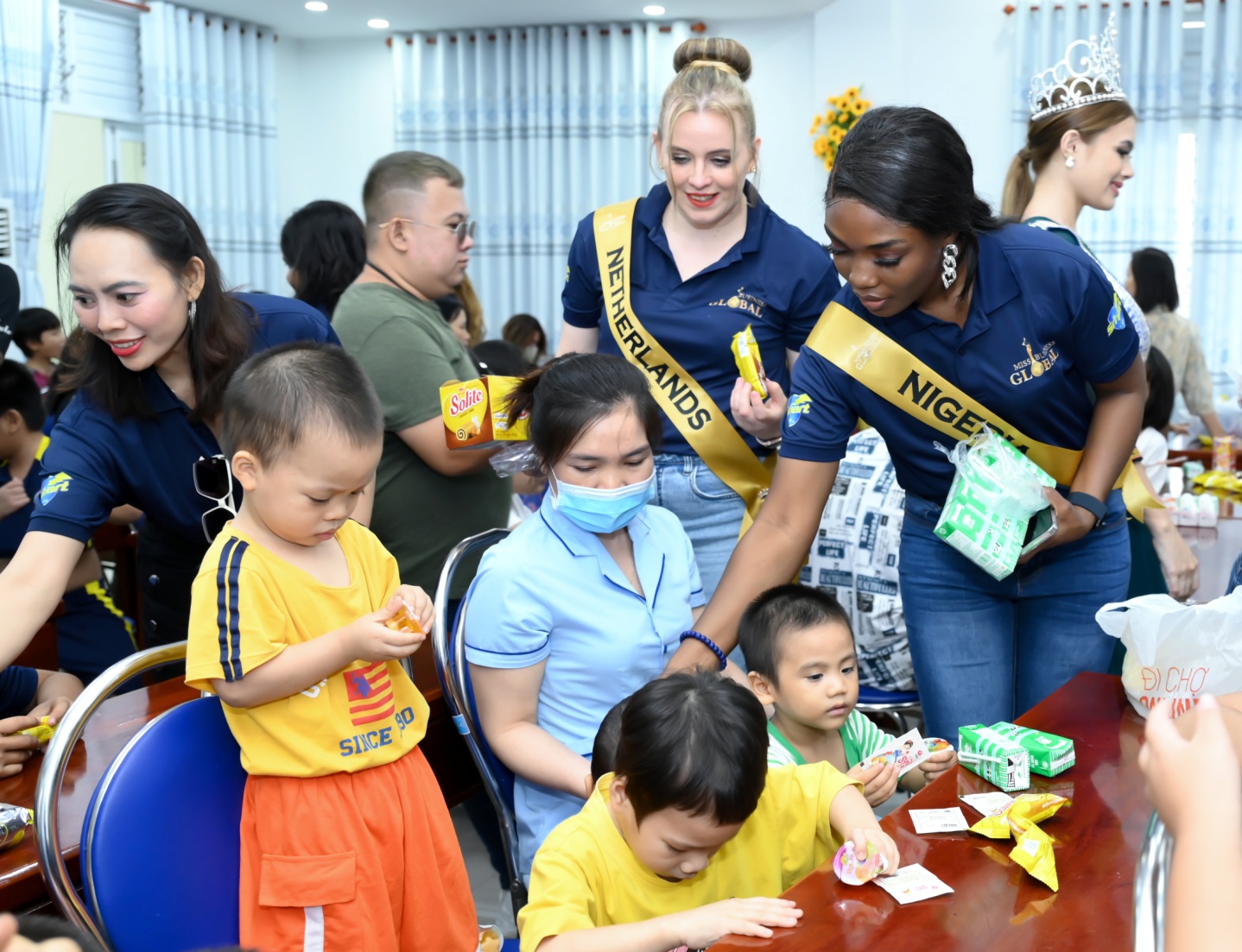 In addition to the gifts of milk, necessities prepared by the Organizing Committee and Miss Business Global 2024 contestants and medical supplies (from the sponsor Smart A), 02 contestants representing North Netherlands (Lily Vo) and Nigeria (Adaeze Chineme) had cash gifts to contribute to the care and nurturing fund of the Center's children.