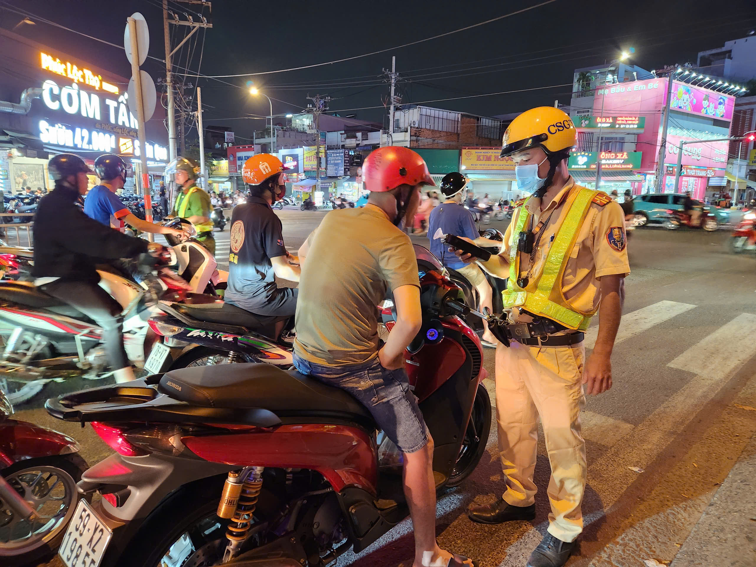 CSGT kiểm tra nồng độ người dân lưu thông trên địa bàn quận Bình Thạnh.