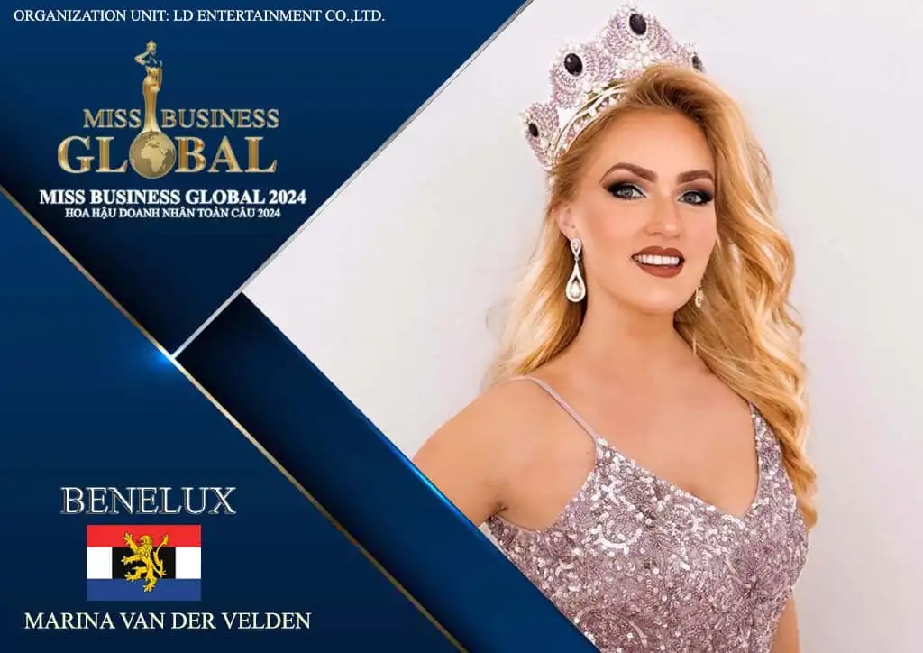 Người đẹp Marina van der Velden (29 tuổi, đến từ Brunssum) đã được mang danh hiệu Hoa hậu Kinh doanh Toàn cầu Benelux 2024 đã chính thức được bổ nhiệm trở thành đại diện Benelux tham dự cuộc thi sắc đẹp quốc tế dành cho các nữ doanh nhân trên toàn cầu được đăng cai tổ chức tại Việt Nam.