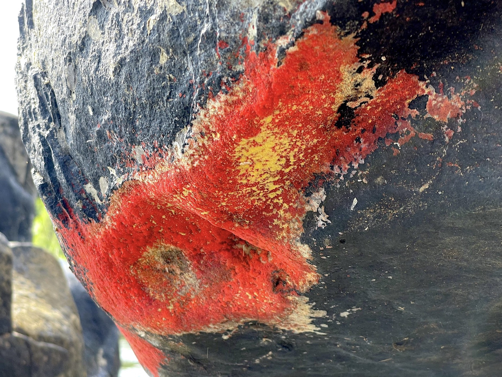 Tảng đá xuất hiện một lớp như xốp, nhiều màu sắc. Ảnh: S.X.