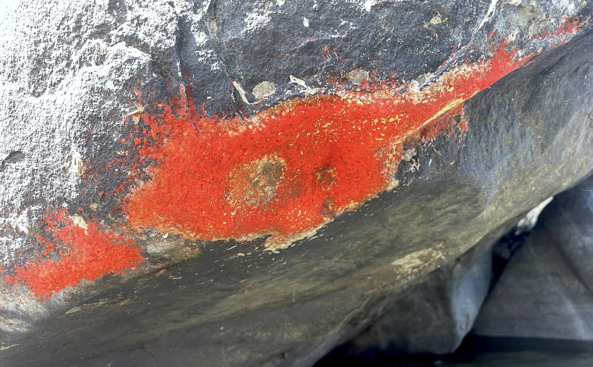 Hiện tượng "nở hoa" ở tảng đá mặt hướng xuống nước. Ảnh: S.X.