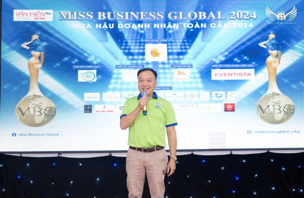 Đại diện Nhà tài trợ Smart A: Thạc sỹ & Dược sỹ - Giám đốc đào tạo & truyền thông Công ty TNHH ứng dụng khoa học công nghệ Quốc tế (Võ Tứ Cường) đã có bài phát biểu chào đón các thí sinh Miss Business Global 2024 đến Việt Nam và giới thiệu về các sản phẩm của Smart A.