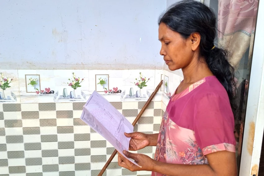 Bà H’Ngung nhận lại sổ đỏ thì phát hiện chẳng còn đất thổ cư. Ảnh: TIẾN THOẠI