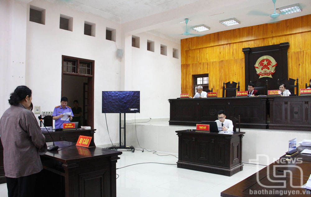 Ngày 15-4, Tòa án nhân dân tỉnh Thái Nguyên xét xử vụ án “Sử dụng con dấu hoặc tài liệu giả của cơ quan, tổ chức”, “Lừa đảo chiếm đoạt tài sản”, “Thiếu trách nhiệm gây hậu quả nghiêm trọng”. Hai bị cáo gồm: Đặng Thị Huyền Đức, sinh năm 1998, ở xóm 7, xã Sơn Cẩm và Dương Thị Kim Cúc, sinh năm 1961, ở tổ 1, phường Trưng Vương, Trưởng Văn phòng Công chứng Dương Cúc - Thái Nguyên (địa chỉ ở phường Hoàng Văn Thụ, TP. Thái Nguyên).