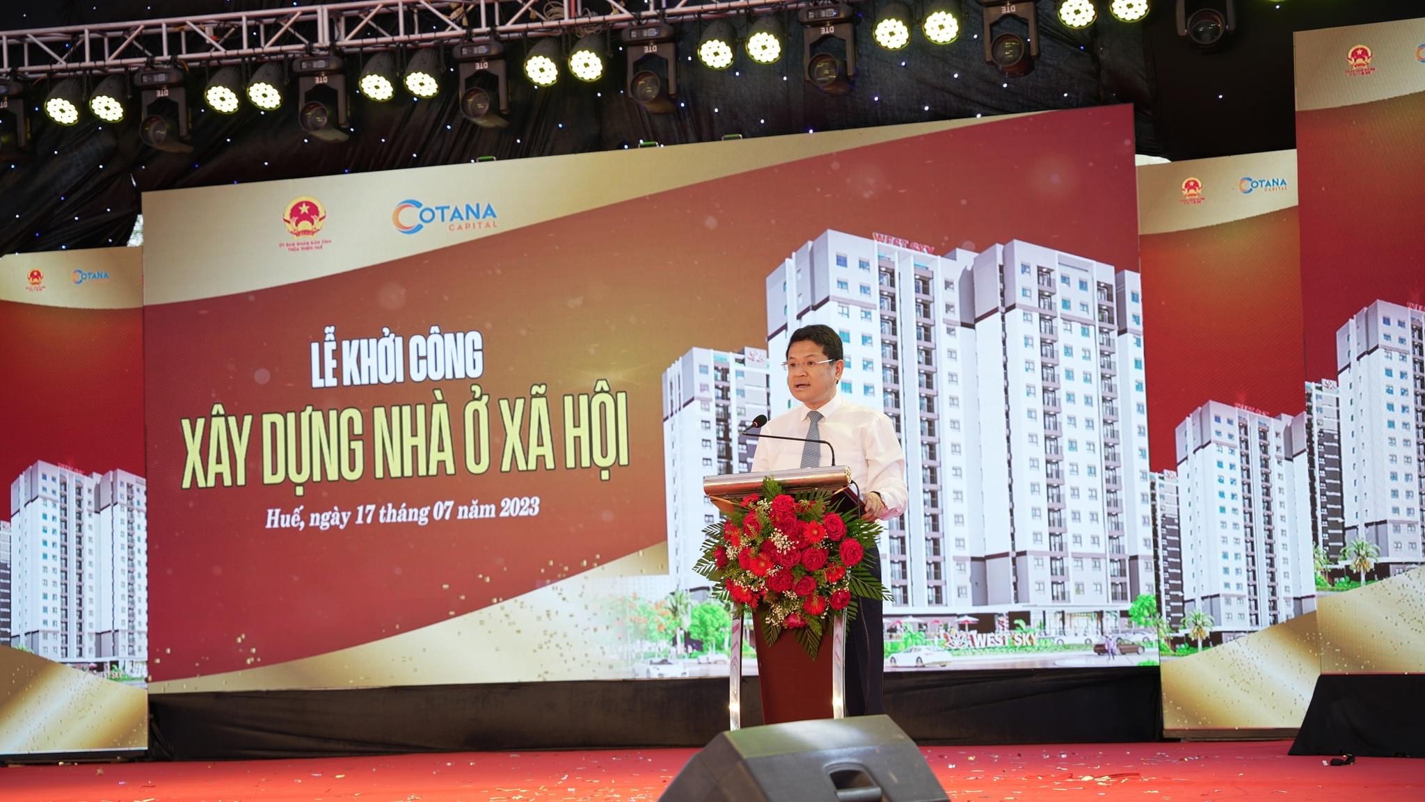 Sáng ngày 17/7, Công ty CP Đầu tư và Phát triển bất động sản Cotana Capital tổ chức lễ khởi công xây dựng khu nhà ở xã hội tại khu phức hợp Thủy Vân giai đoạn 2, thuộc Khu B đô thị mới An Vân Dương (Ecogarden), phường Thủy Vân, thành phố Huế.