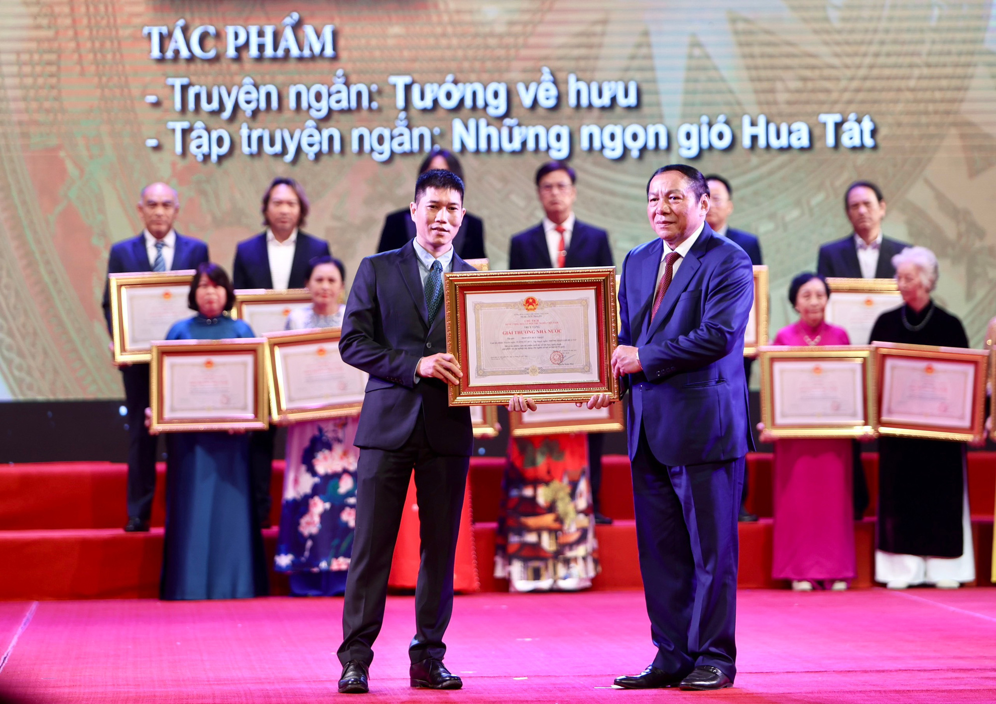 Chủ tịch nước Võ Văn Thưởng trực tiếp trao tặng Giải thưởng Hồ Chí Minh cho 16 tác giả, đồng tác giả hoặc người nhà tác giả với những văn nghệ sĩ đã qua đời.