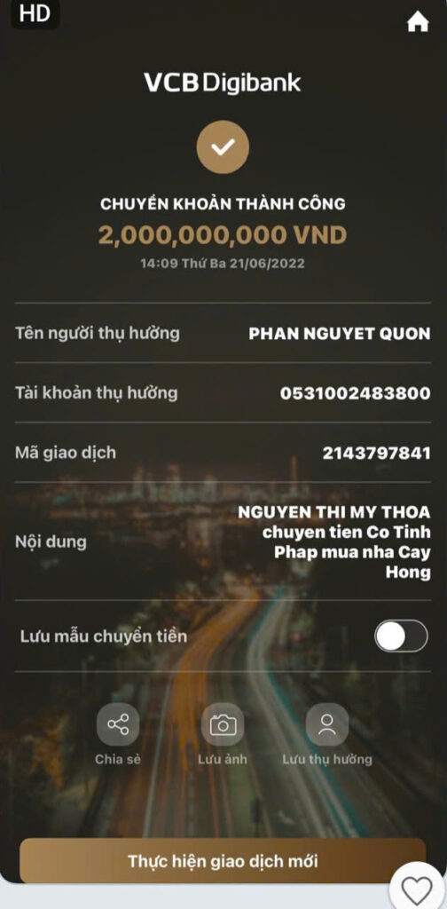 Hiện bà Thoa đã gửi đơn đến các cơ quan chức năng đề nghị xem xét, làm rõ các giao dịch tài chính cũng như các hoạt động liên quan.
