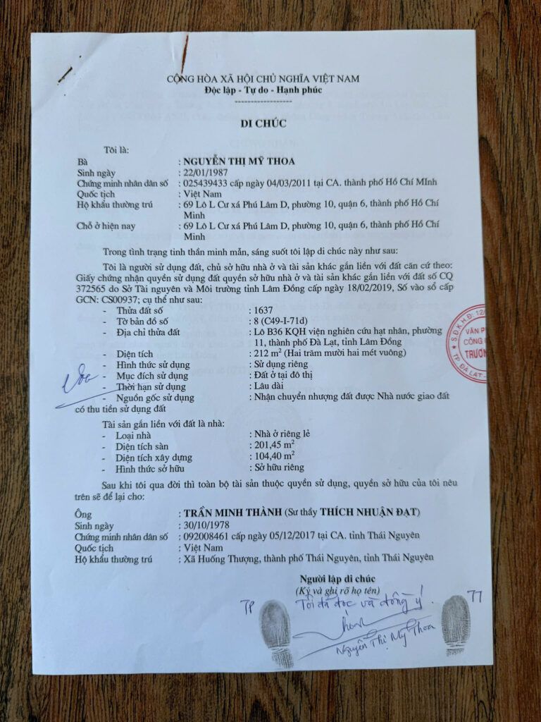 Cúng đất, di chúc tài sản vì tin vào “hạnh nguyện”