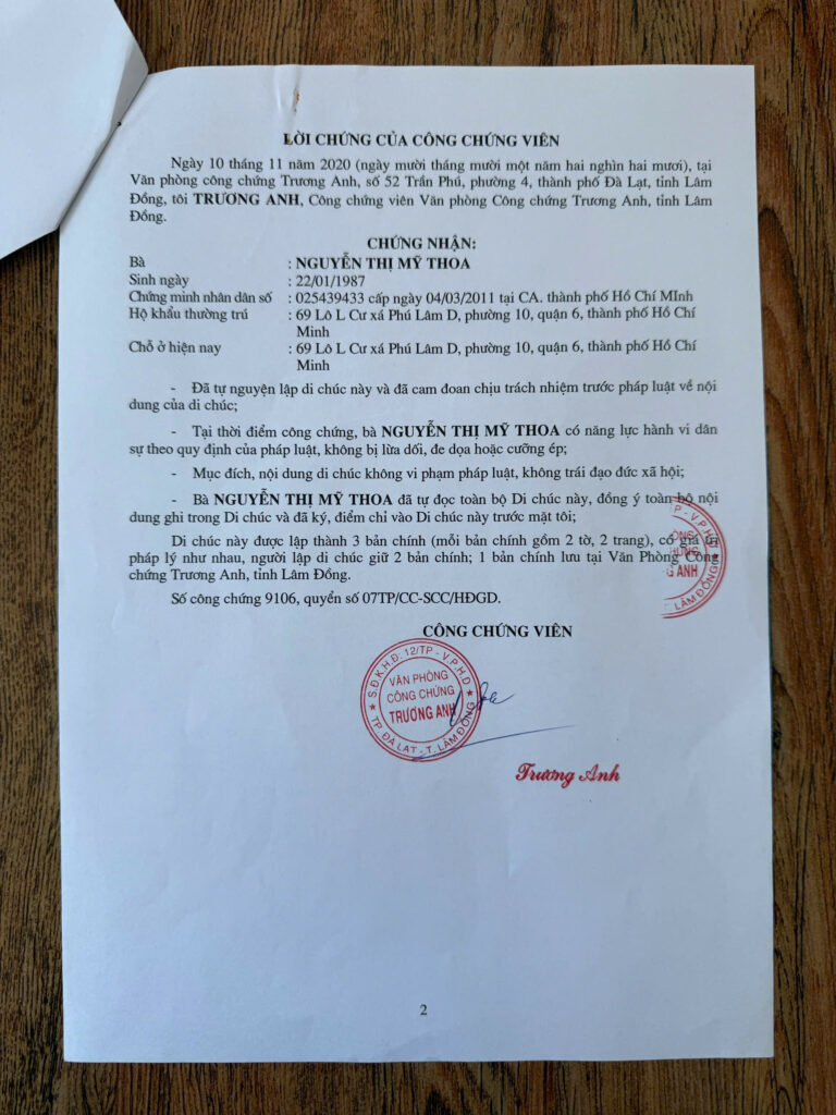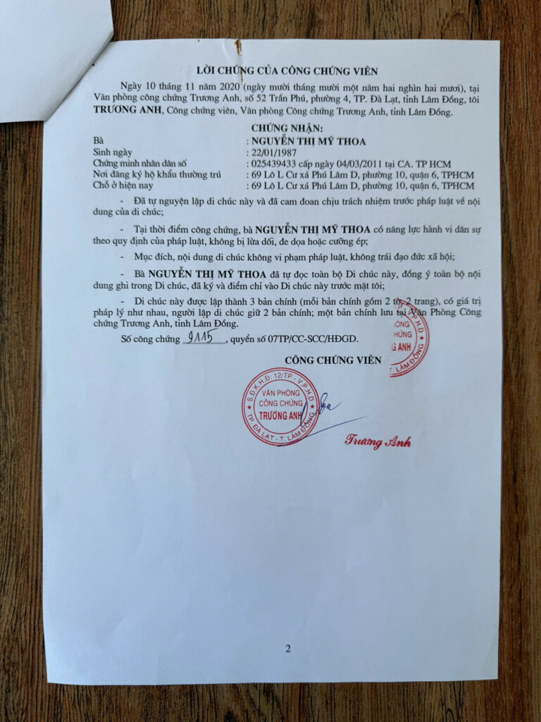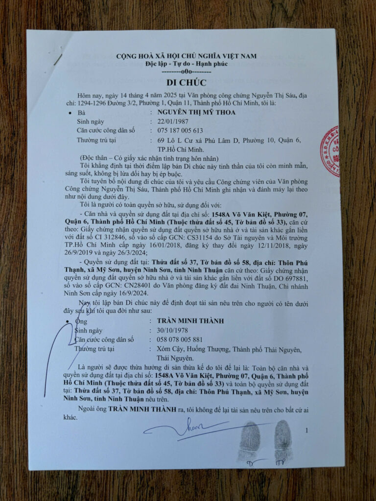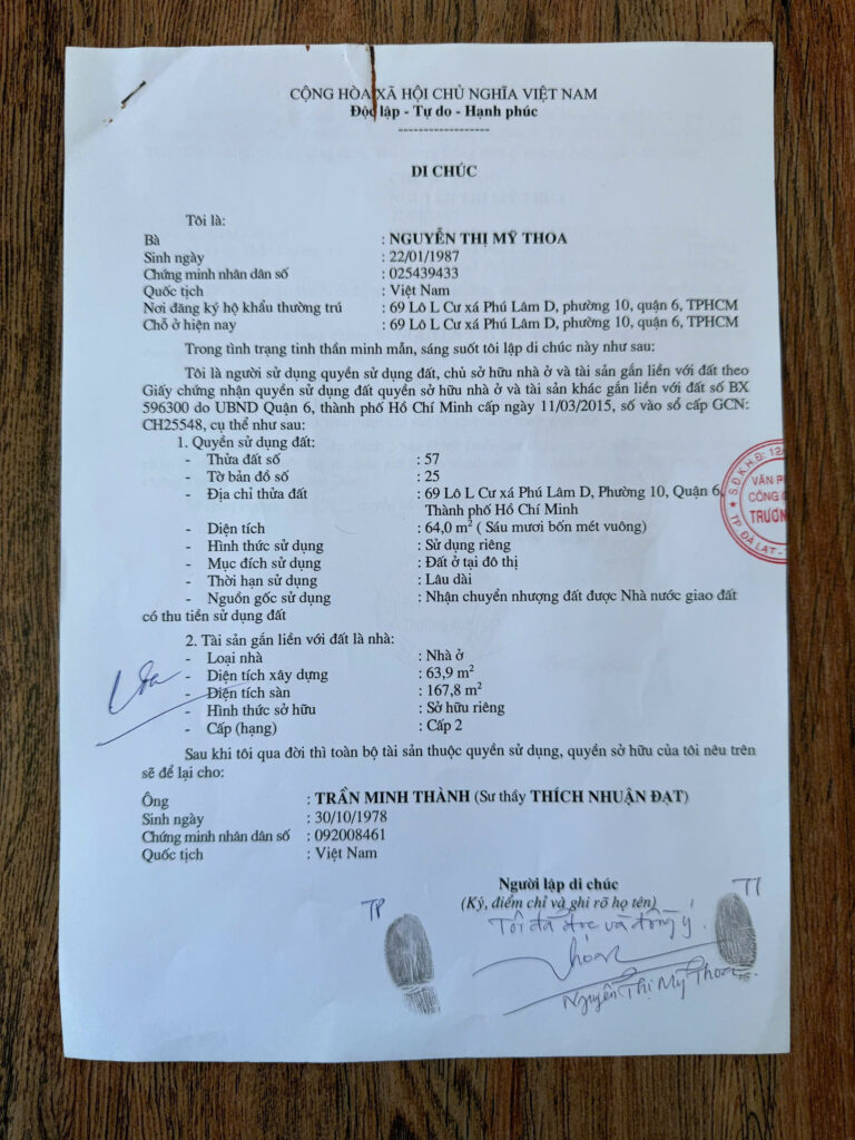 Tin vào tâm linh, bà Thoa làm di chúc tặng ông Thành 6 căn nhà