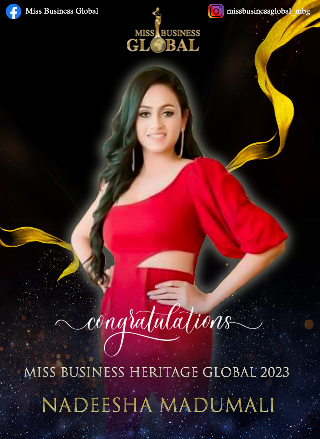 Tiếp nối thành công của đại diện Sri Lanka tại cuộc thi Hoa Hậu Doanh Nhân Toàn Cầu 2023, người đẹp Nadeesha Madumali đã mang về 2 thành tích cao cho nước nhà là Best National Costume và danh hiệu Miss Business Heritage Global 2023.