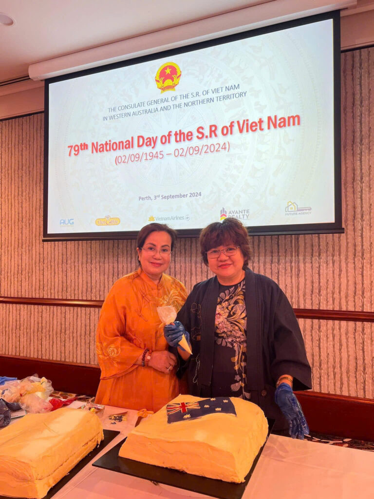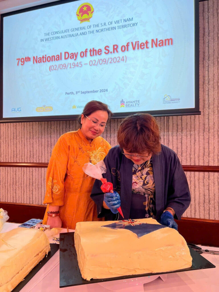 Ngày 03/9/2024, Tổng lãnh sự quán Việt Nam tại Tây Úc và Vùng Lãnh thổ Bắc Úc đã trọng thể tổ chức Lễ kỷ niệm 79 năm Quốc khánh nước Cộng hoà xã hội chủ nghĩa Việt Nam (02/9/1945-02/9/2024). Buổi lễ có sự tham dự của ông Stephen Dawson - Bộ trưởng Bộ Dịch vụ Khẩn cấp, Đổi mới và kinh tế số, Khoa học, Nghiên cứu Y tế Tây Australia đại diện chính quyền Tây Úc, cùng gần 200 quan khách từ Chính quyền, Quốc hội bang, các bộ, ban, ngành, Lãnh sự đoàn, doanh nghiệp, học giả và cộng đồng người Việt Nam Tây Australia..