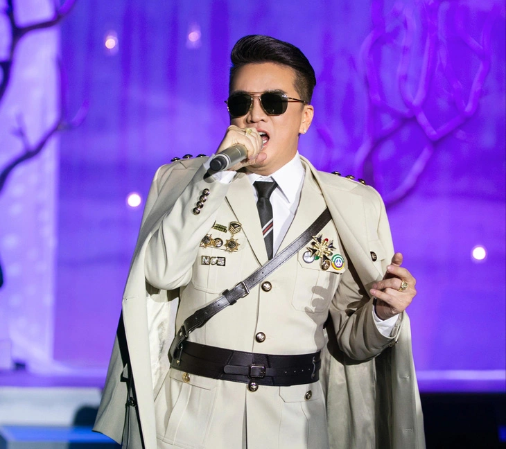 Trước đó, trong live show Ngày em thắp sao trời diễn ra tối 4-5 tại TP.HCM, Đàm Vĩnh Hưng mặc trang phục có đeo nhiều huy hiệu lạ khi biểu diễn.