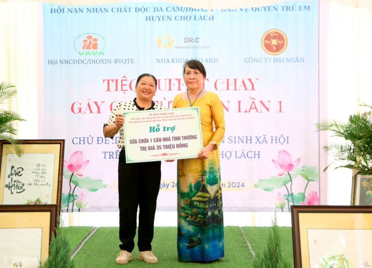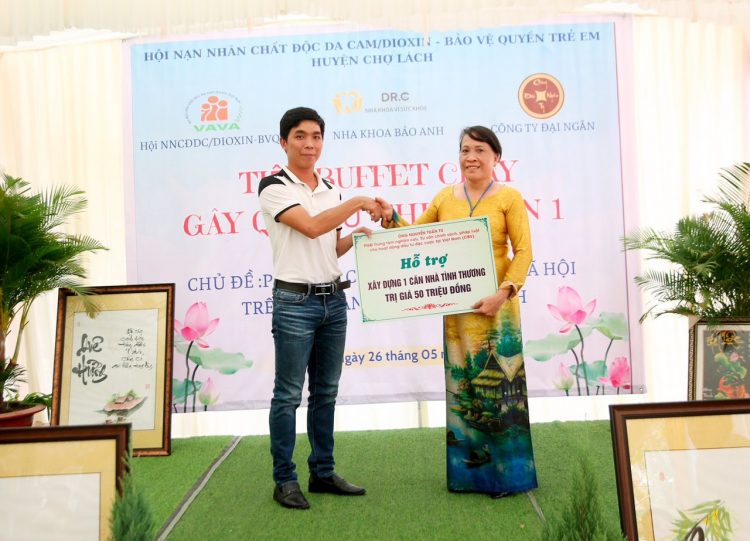 ThS.BS Nguyễn Quang Tiến trao thêm kinh phí cho hộ ông Nguyễn Văn Đỏ và nhận thư cảm ơn của UBND huyện và Hội nạn nhân chất độc da cam/dioxin huyện Chợ Lách