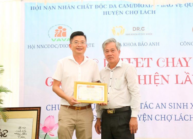 Ông Nguyễn Hồng Phước – CVP Trung tâm Nghiên cứu, tư vấn về chính sách, pháp luật cho hoạt động đầu tư đặt cược tại Việt Nam (CBV) trao kinh phí cho UBND huyện, Hội nạn nhân chất độc da cam/dioxin và nhận thư cảm ơn từ UBND huyện Chợ Lách